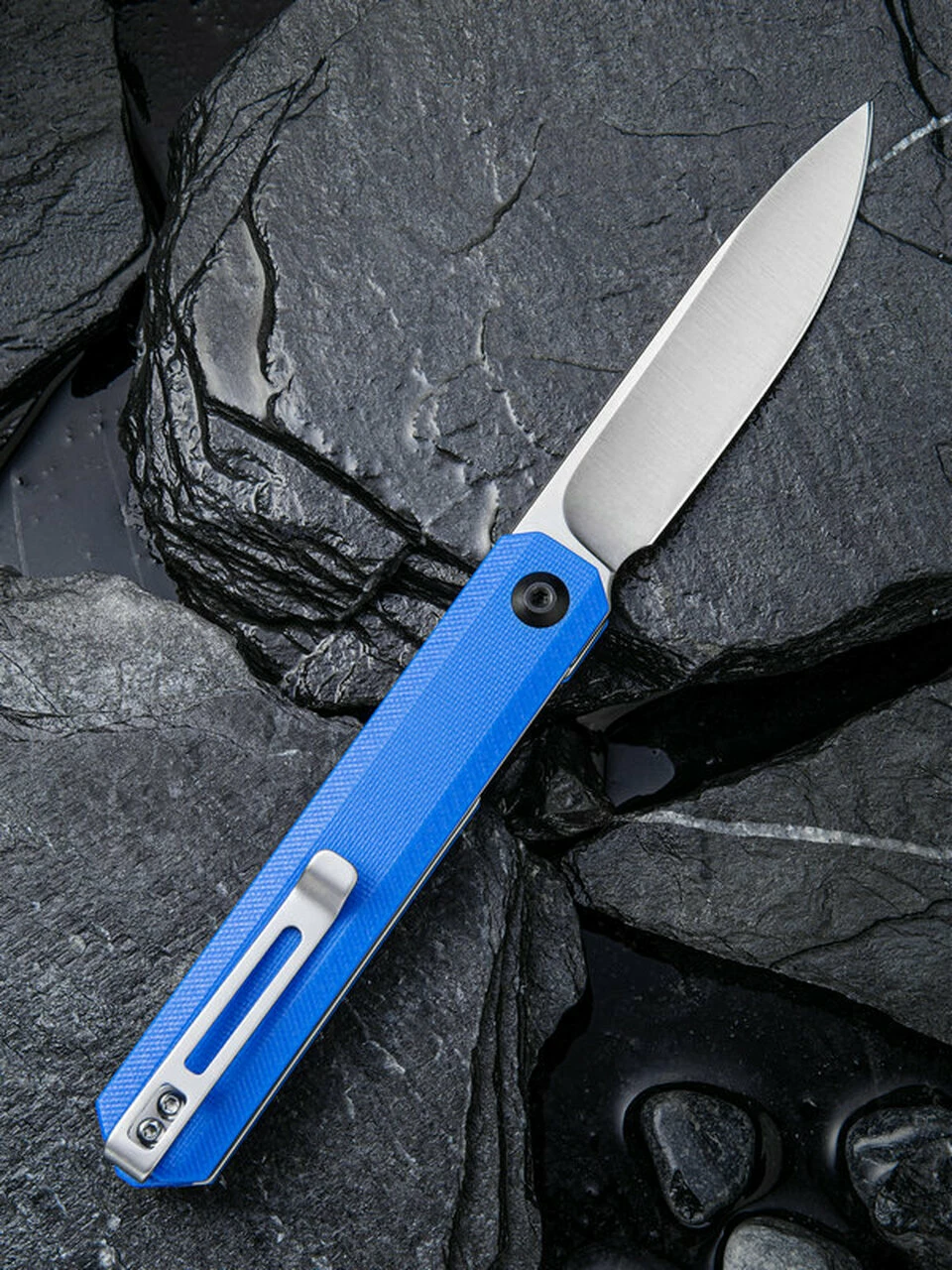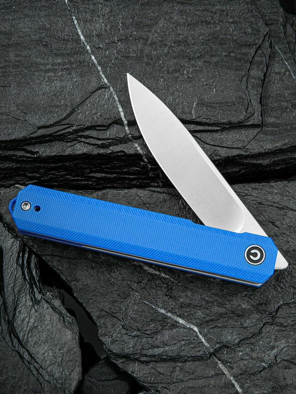 CIVIVI Exarch C2003B, 3.22″ D2 Satin Drop Point Plain Blade, Blue G-10 Handles
