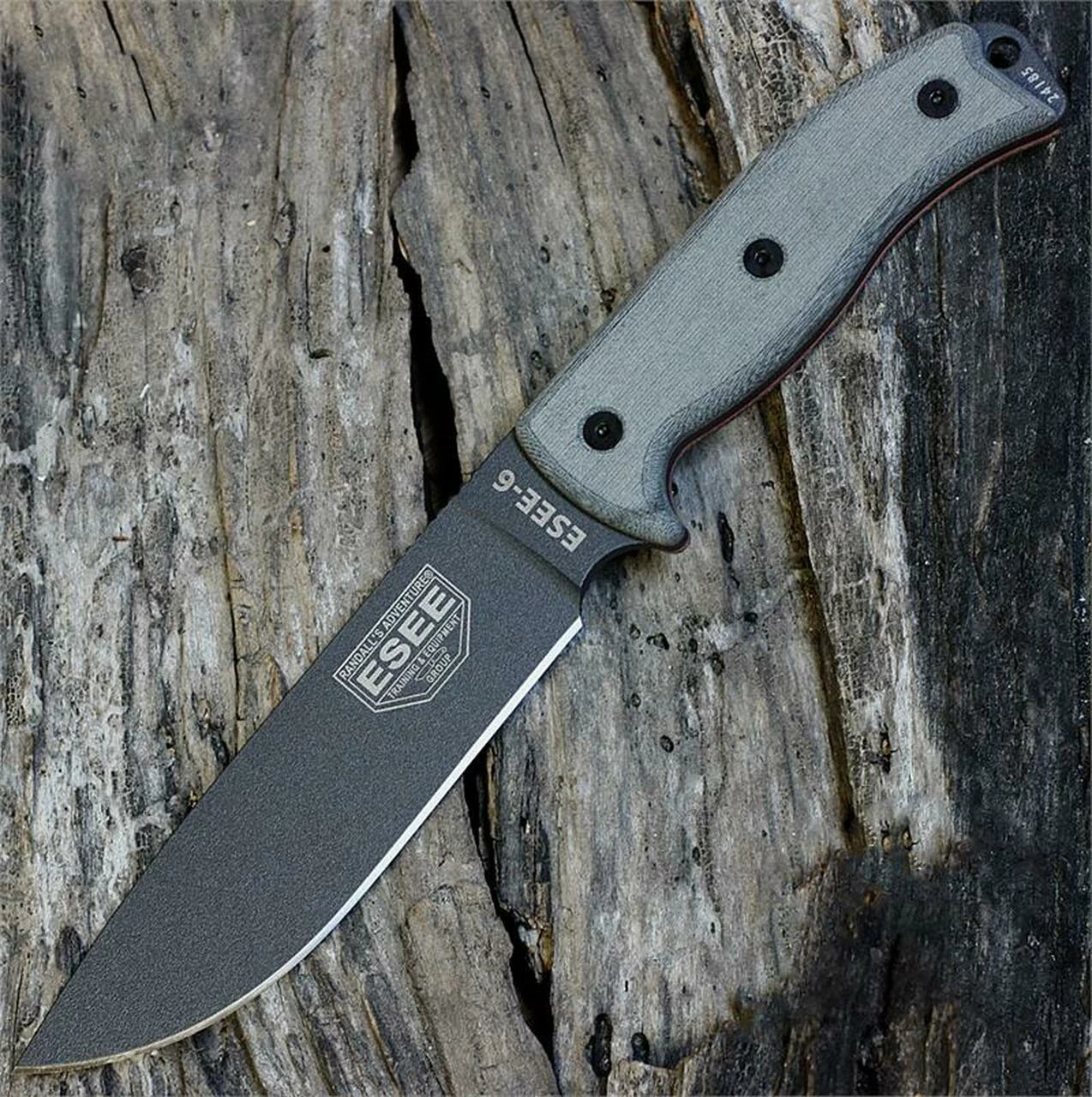 The ESEE Model 6 was designed by Jeff Randall and Mike Perrin as their answer to the popular 6 to 7 inch blade range found on many military issue knives. The full flat grind and 3/16 thickness makes for an extremely efficient cutter in the wilderness or for utility chores. As with other ESEE knives, the Model 6 has been put to the test many times by military, law enforcement and adventurers all over the world, whether in the Randalls Adventure & Training jungle survival school, carried by special operations personnel in combat, or strapped to a hikers backpack. If youre an outdoorsman, soldier, or just simply like to collect quality, hard-use knives, then youll love the ergonomics, balance and cutting power of the ESEE-6. As with all ESEE Knives, the Model 6 is backed by the famous ESEE no questions asked lifetime warranty. If you break it, just send the broken knife back to ESEE for a replacement.