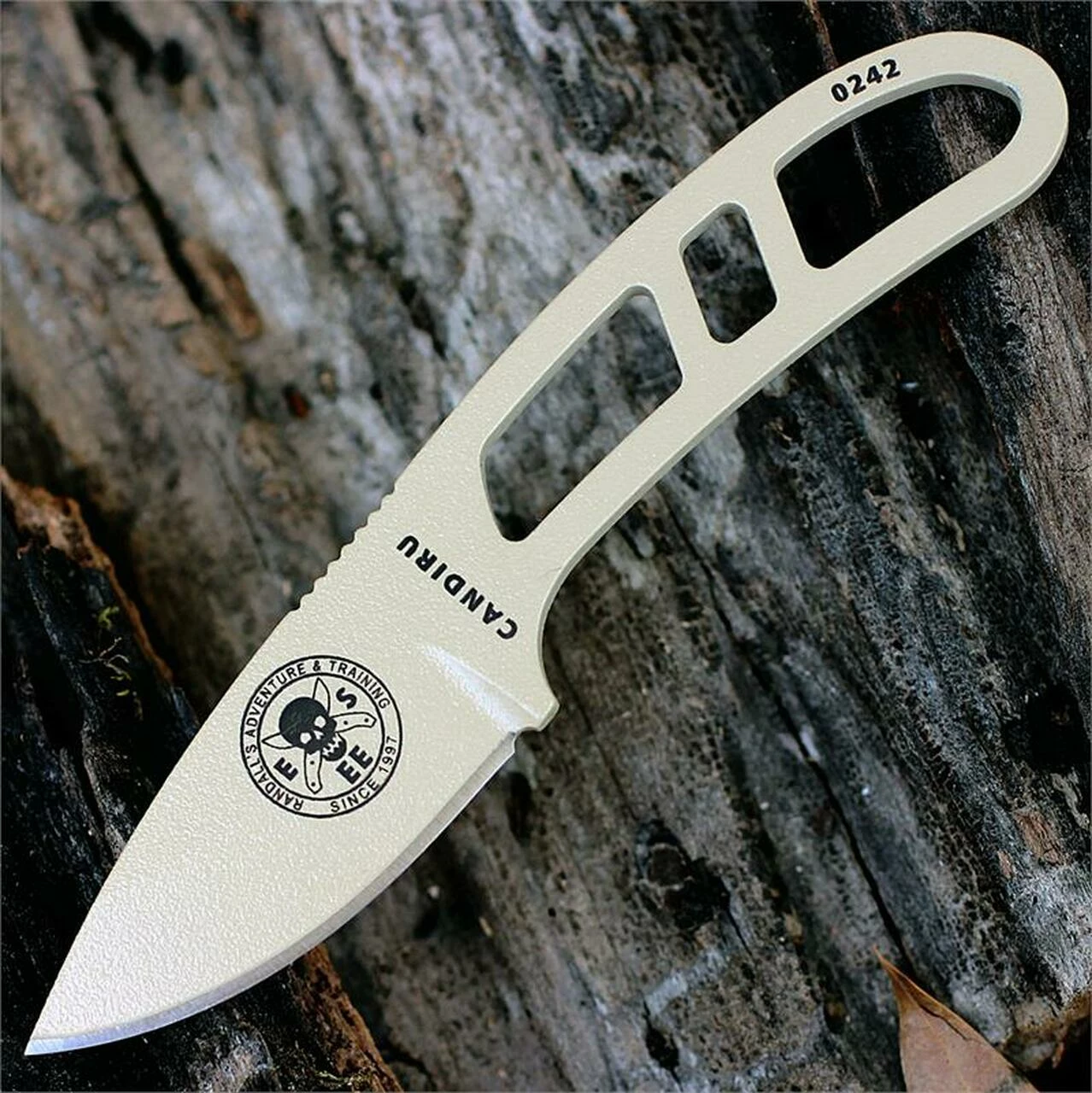 The little knife that can! The Candiru knife was named after a little fish that is native to the Amazon River. The Candiru is a great neck, boot knife and pocket knife. The overall length of the Candiru is 5.13 inches with a 2-inch cutting edge of 1095 high carbon steel (55-57 Rc). With a thickness of 0.125 inches (thinner than ESEE’s IZULA), the Candiru is less than 2 ounces, without the sheath. The knife comes with a baked on powder coating available in many colors.