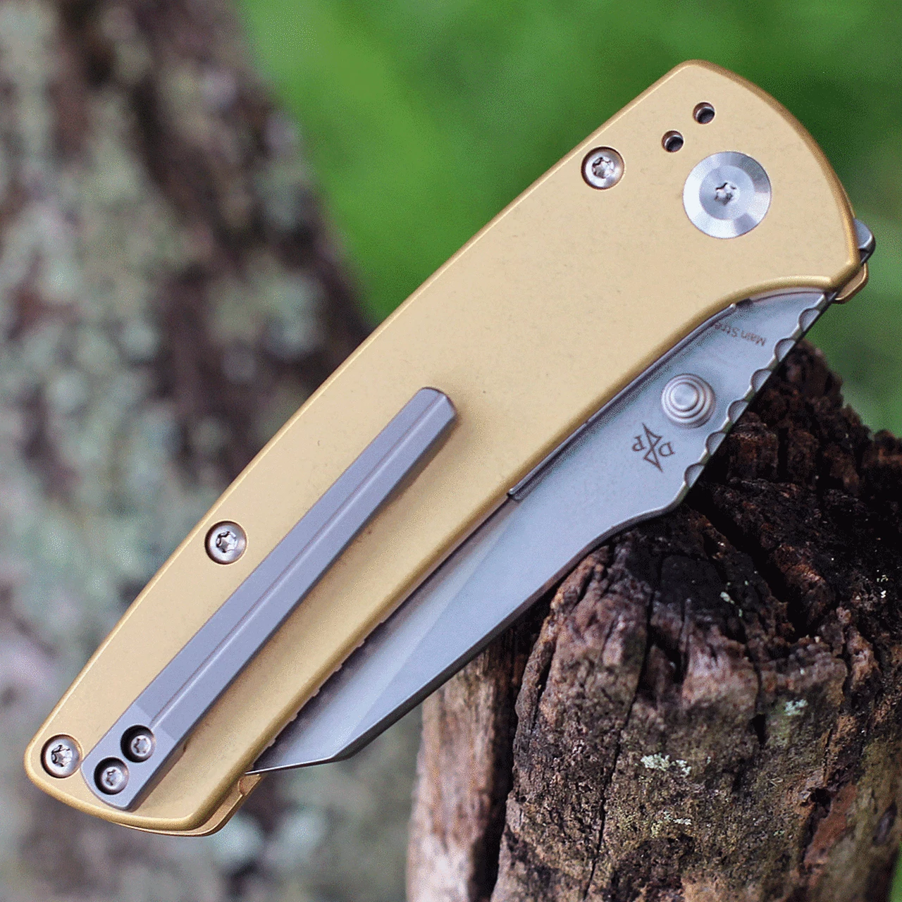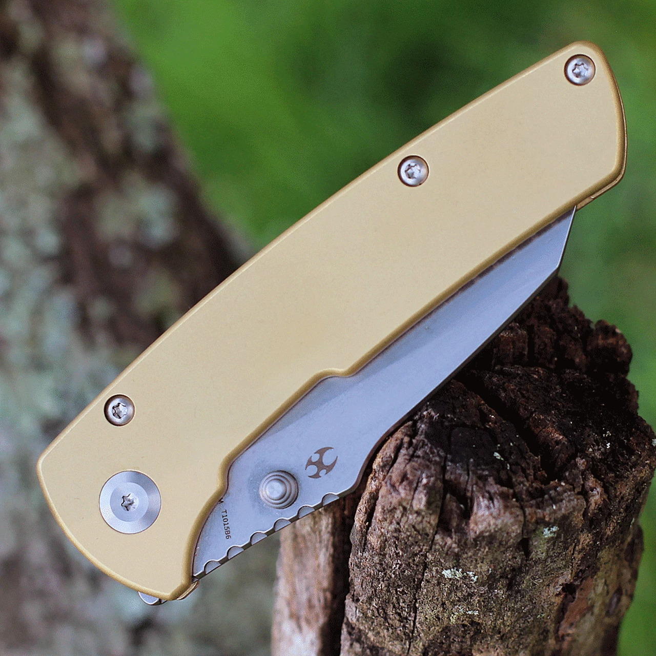 The Main Street, designed by Dirk Pinkerton, is a pocket knife that illegible for utility tasks. The blade has a wharncliffe shape that pierces and slices with ease. It is a budget-friendly model with copper handle and 154 CM blade.