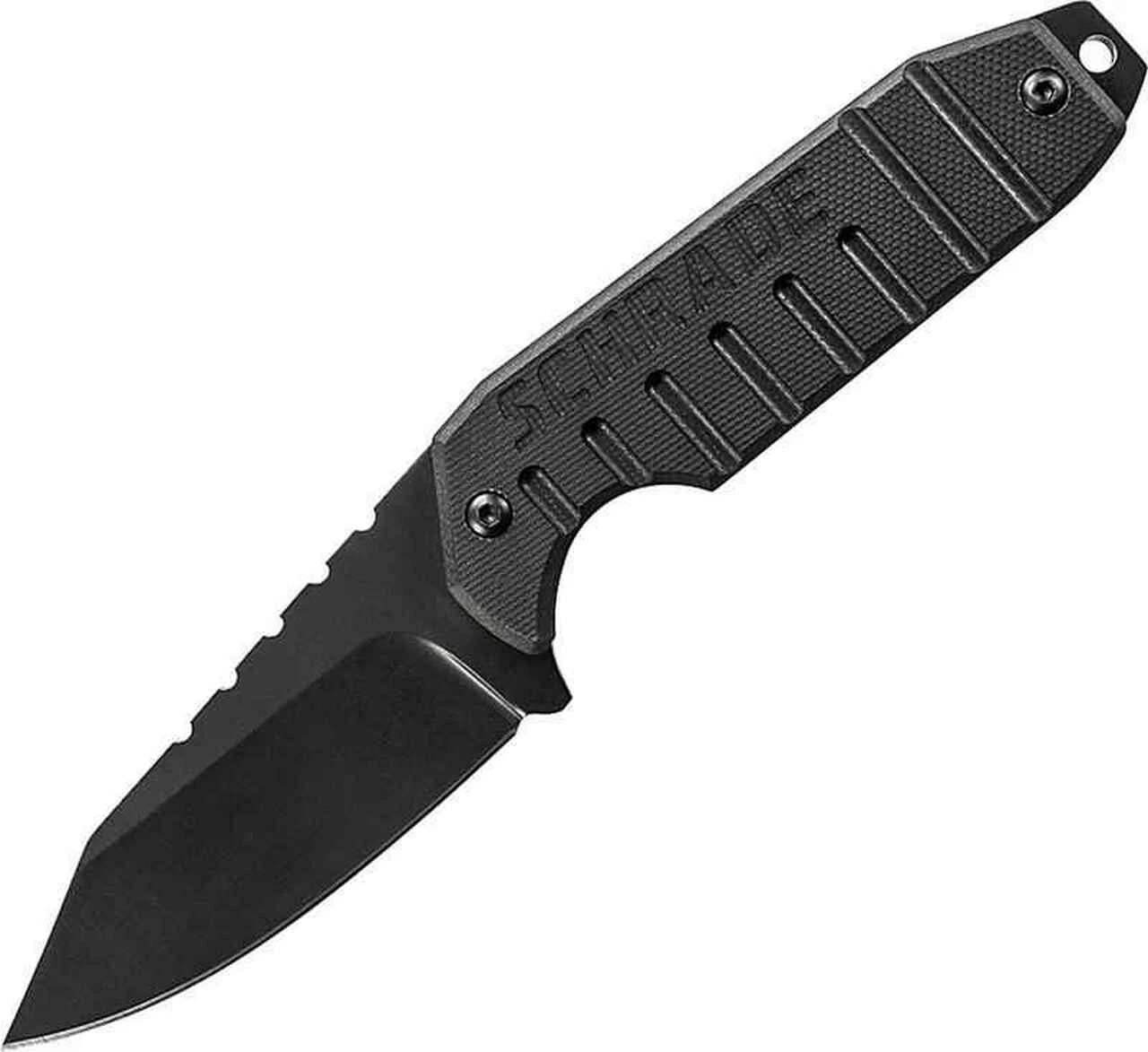 The SCHF16 fixed blade from Schrade features a reverse tanto style blade. Full-tang with G-10 scales and lanyard hole. The SCHF16 is comfortable in hand with a deep index groove and ribbed scales for grip. Includes a thermoplastic sheath with neck cord.