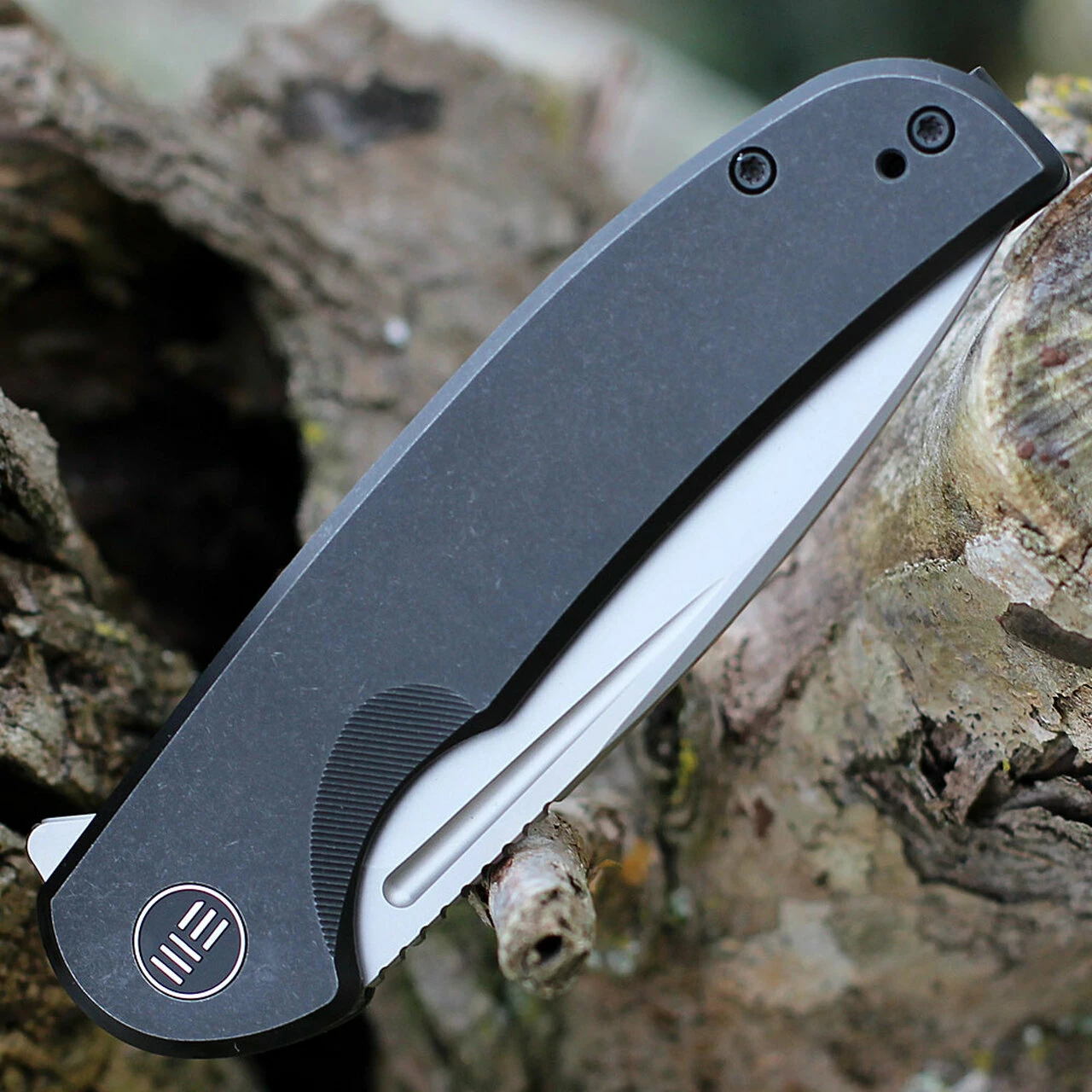 WE Knife Beacon Frame Lock (WE20061B-4) – 3.5″ CPM 20CV Silver Bead Blast Drop Point Blade, Black Titanium Handle