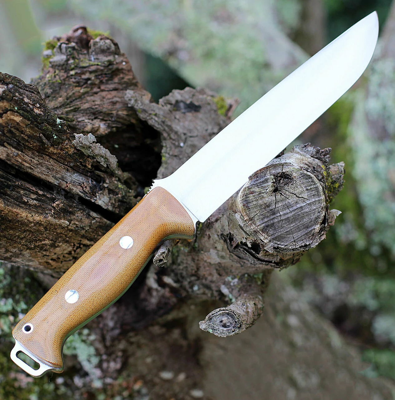 Bark River Bravo 2 Fixed Blade (07-211M-NC) – 7″ A2 Satin Drop Point Blade, Natural Canvas Micarta Handle