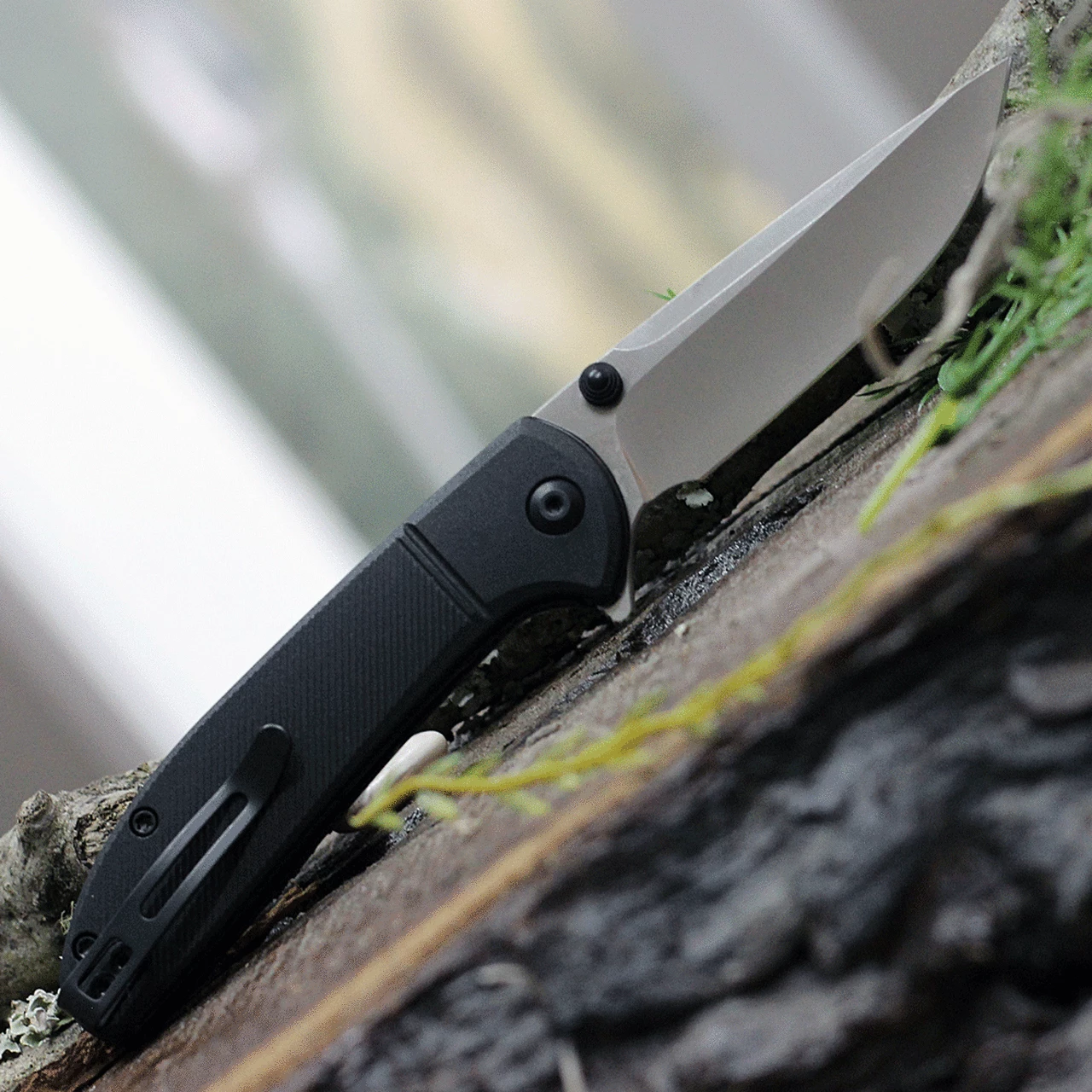 - 9Cr18MoV stainless steel blade with a satin finish has good corrosion resistance and can be easily sharpened.
