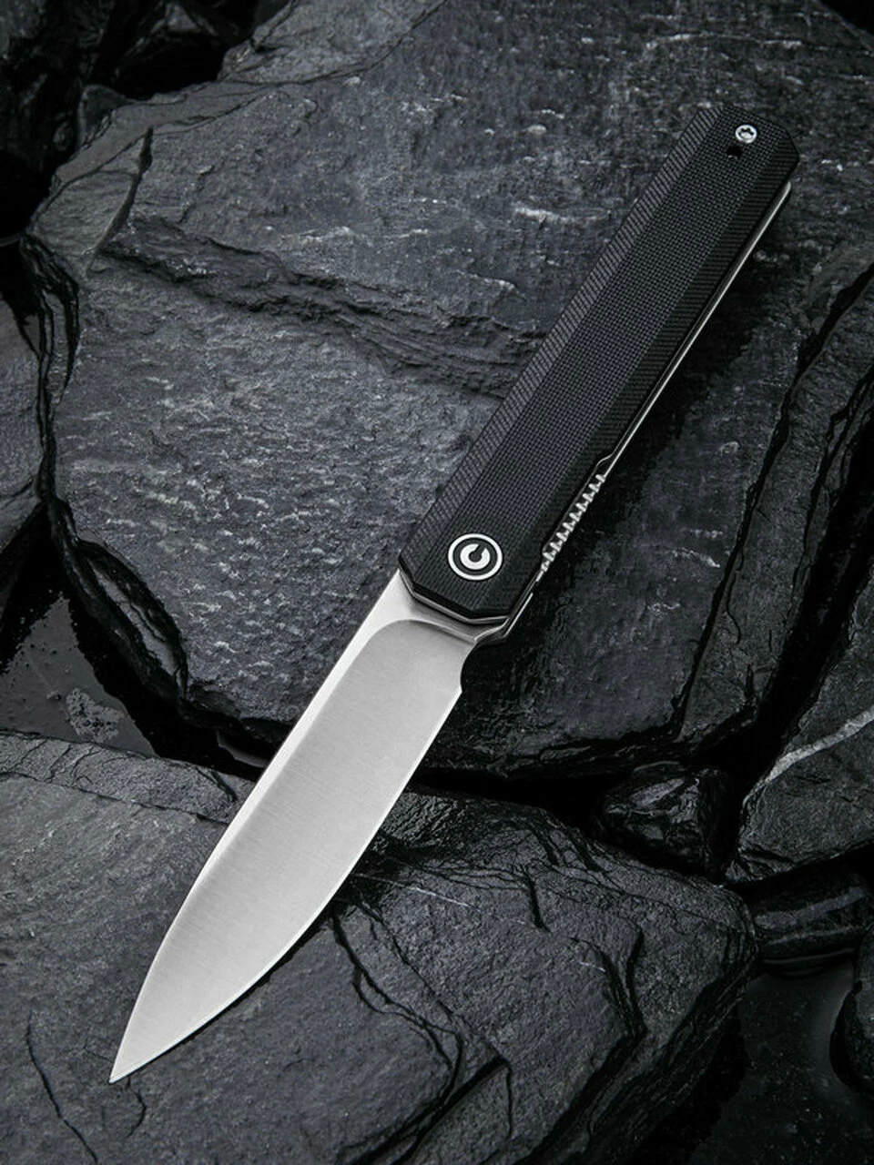 CIVIVI Exarch C2003C, 3.22″ D2 Satin Drop Point Plain Blade, Black G-10 Handles