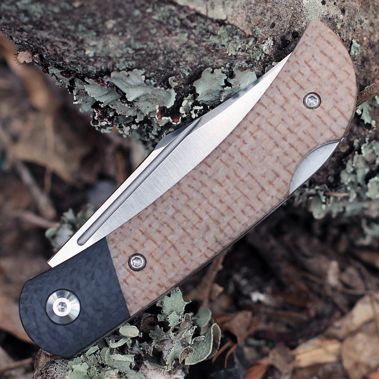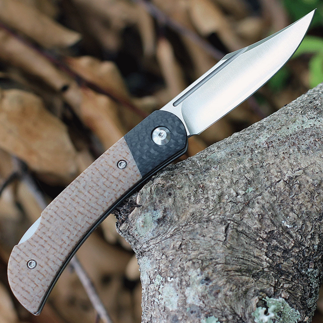 CIVIVI Rustic Gent C914C, 2.97″ D2 Satin Clip Point Blade, Tan Micarta Handle w/Carbon Fiber Bolster