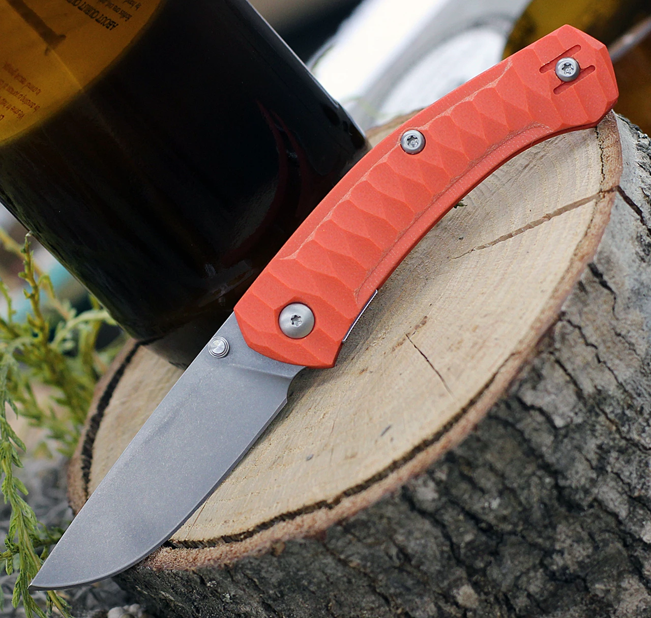 GiantMouse ACE Iona Liner Lock, 2.9″ Satin M390 Drop Point Blade, Anso Textured Orange G-10 Handle
