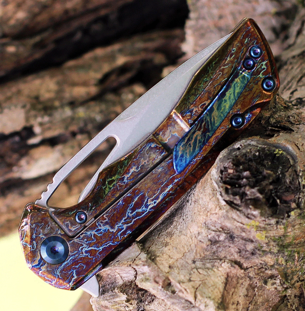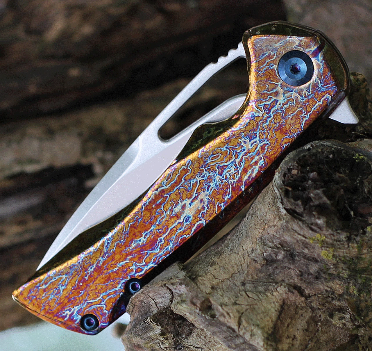 Kansept Knives K2001A11 Mini Kryo, 2.9″ CPM-S35VN Satin Blade, Lightning Strike Titanium Handle