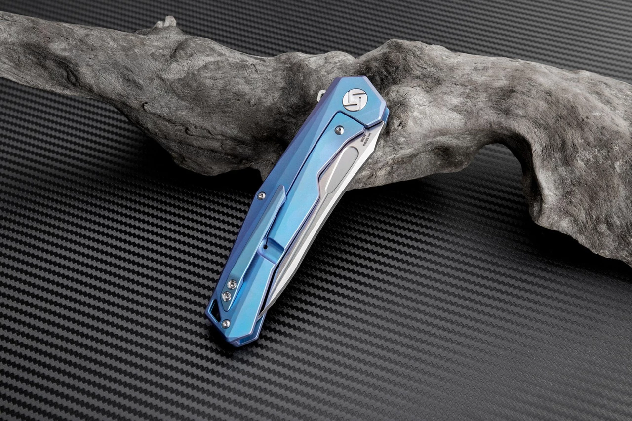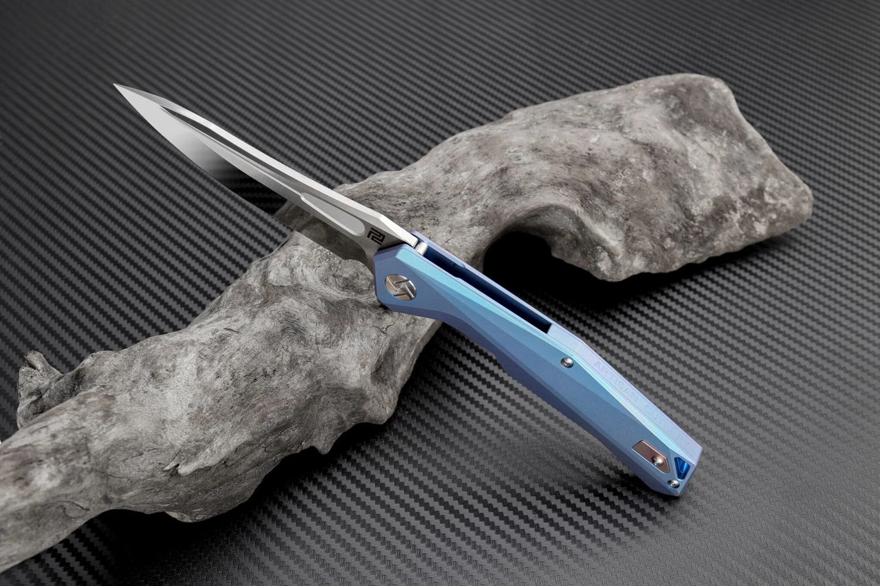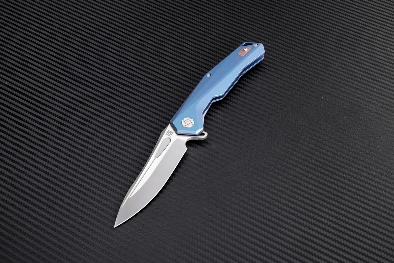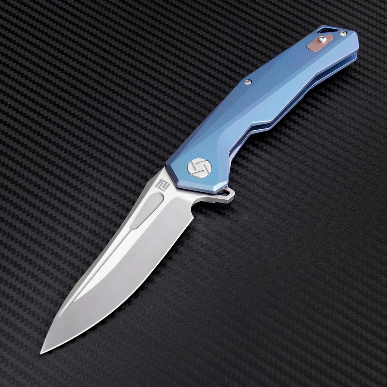 Artisan Zumwalt ATZ1808GBUS, 3.78″ S35VN Plain Blade, Blue Titanium Handle
