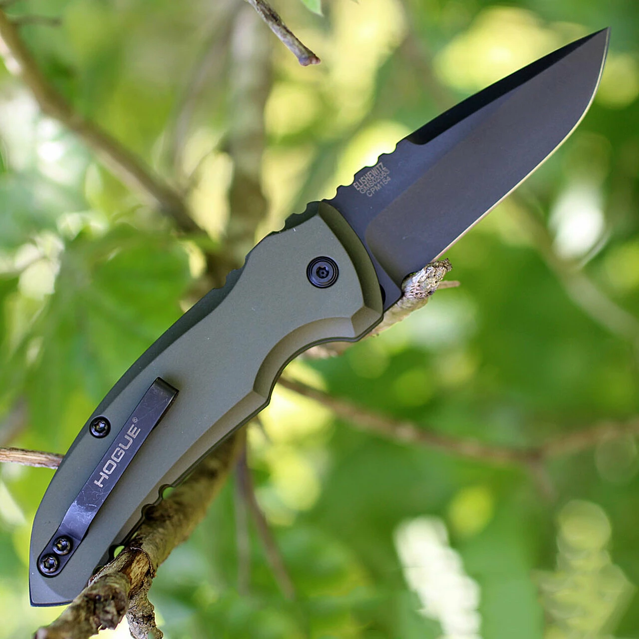 Hogue A01 Microswitch Drop Point 24111, 2.75″ Black CPM154 Plain Blade, Matte OD Aluminum Handle
