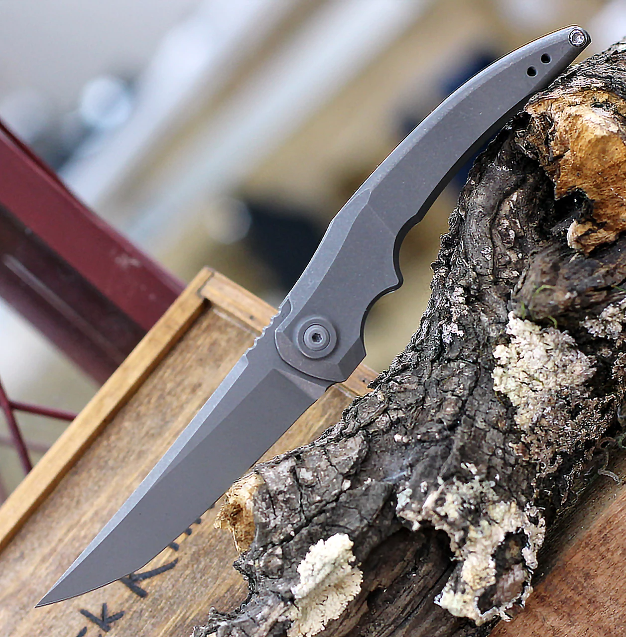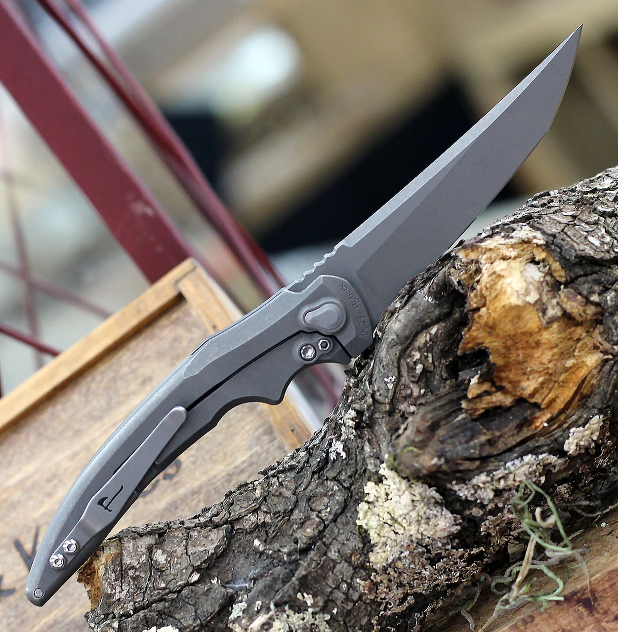 Jake Hoback Sliver Framelock HOB022, 3.25″ CPM-20CV Gray Stonewash Plain Blade, Gray Anodized Titanium Handle