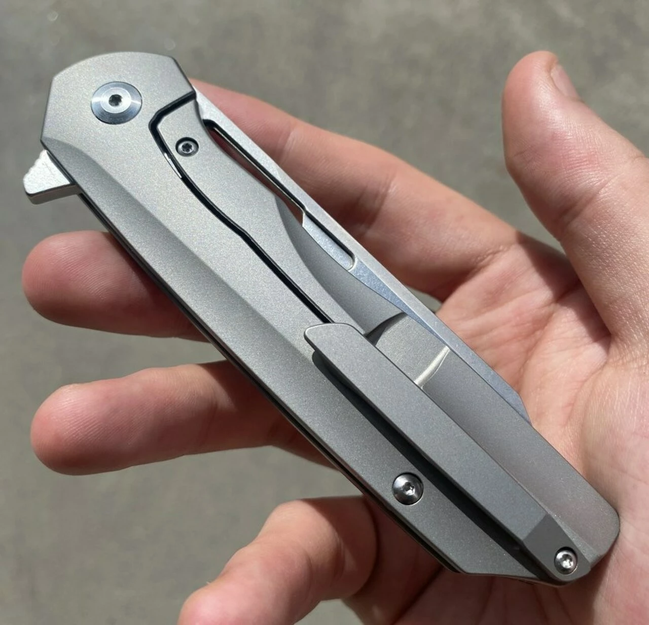 - Two-tone Chamfered titanium handles for a smooth gripping surface that is comfortable in the pocket or hand.