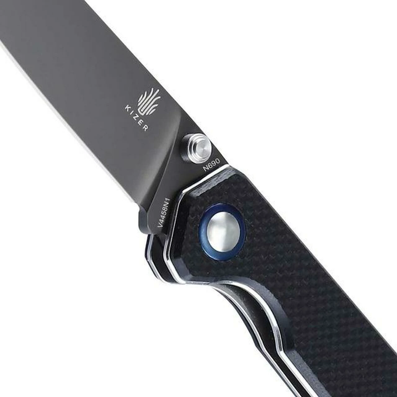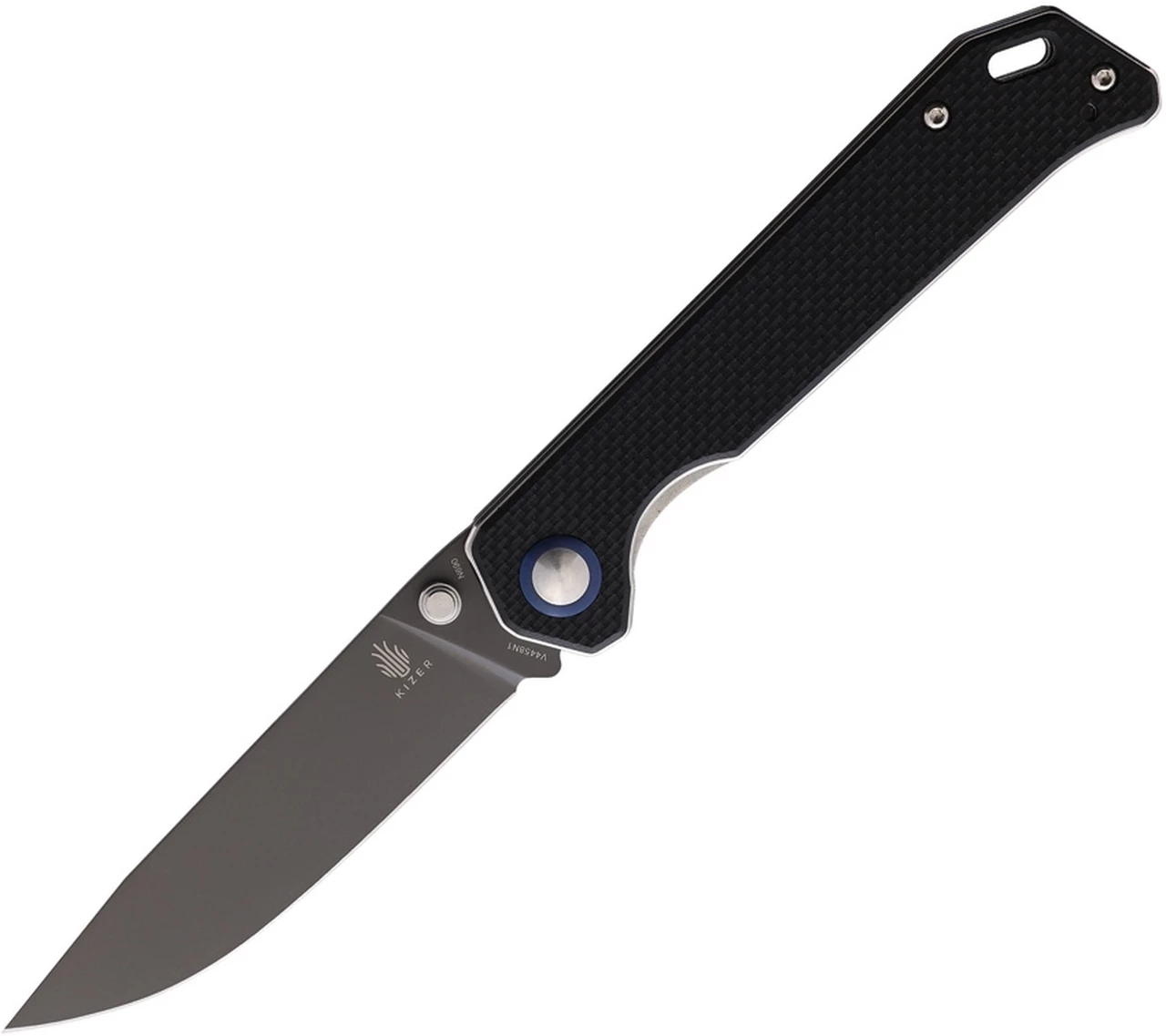 Kizer Cutlery Begleiter (V4458N1) – 3.56″ N690 Black Ti-Coated Drop Point Blade, Black G-10 Handle