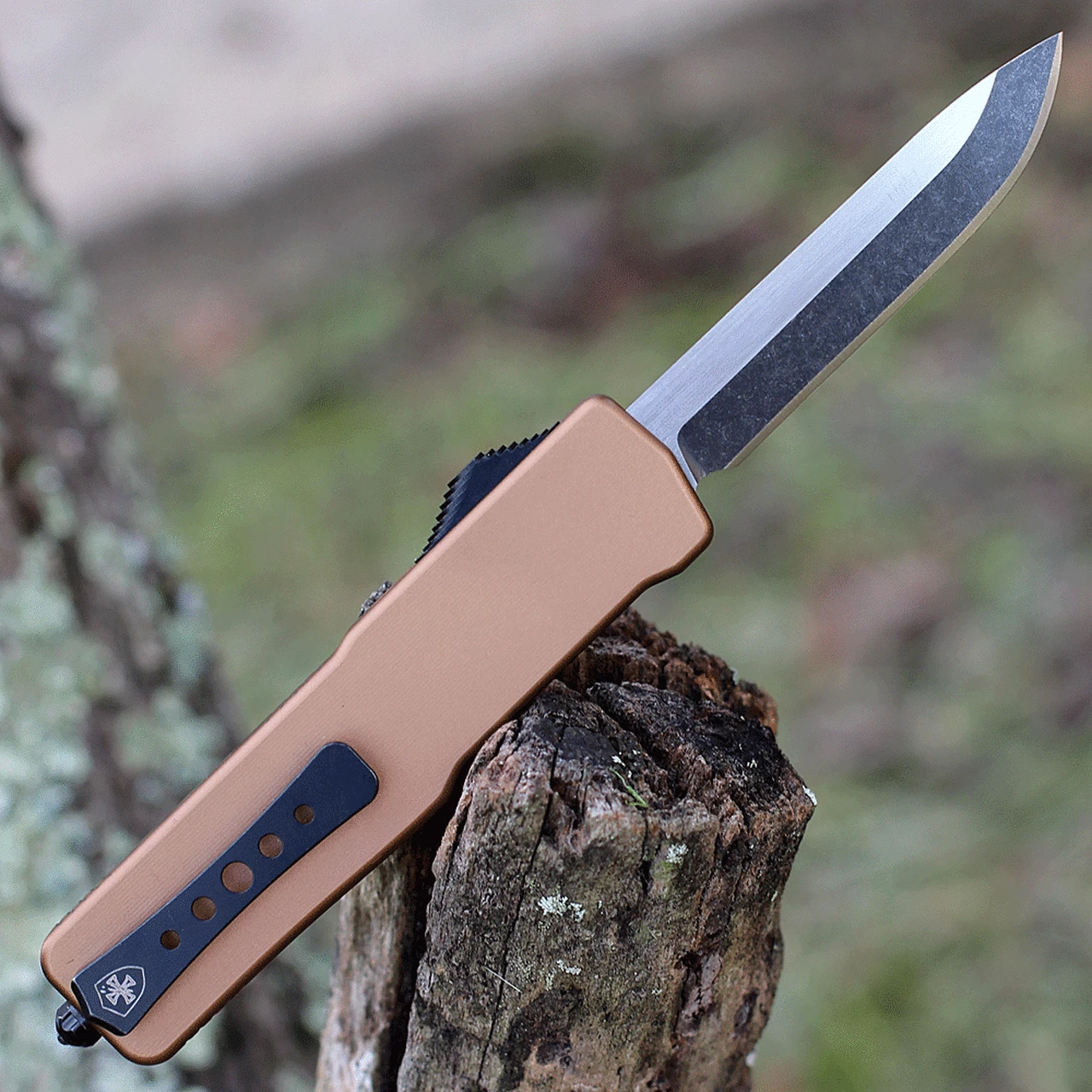 Templar Knife Premium Lightweight Series – Small OTF Automatic (SA-AB-32-1) – 3″ Powder D2 Black SW Drop Point, Aluminum Bronze Handle