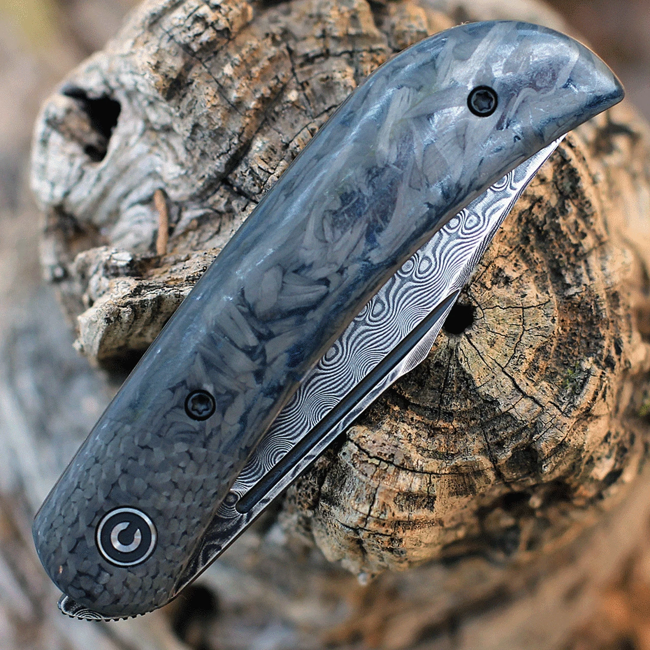 CIVIVI Appalachian Drifter II Front Flipper (C19010C-DS1) – 2.96″ Black Hand Rubbed Damascus Clip Point Blade, Blue Carbon Fiber Handle with Twill Carbon Fiber Bolster