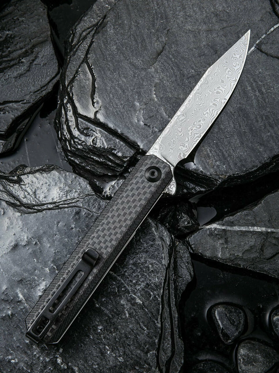 Civivi Chronic Linerlock Folder C917DS, 3.22″ Damascus Clip Point Plain Blade, G10 With Twill Carbon Fiber Overlay Handle