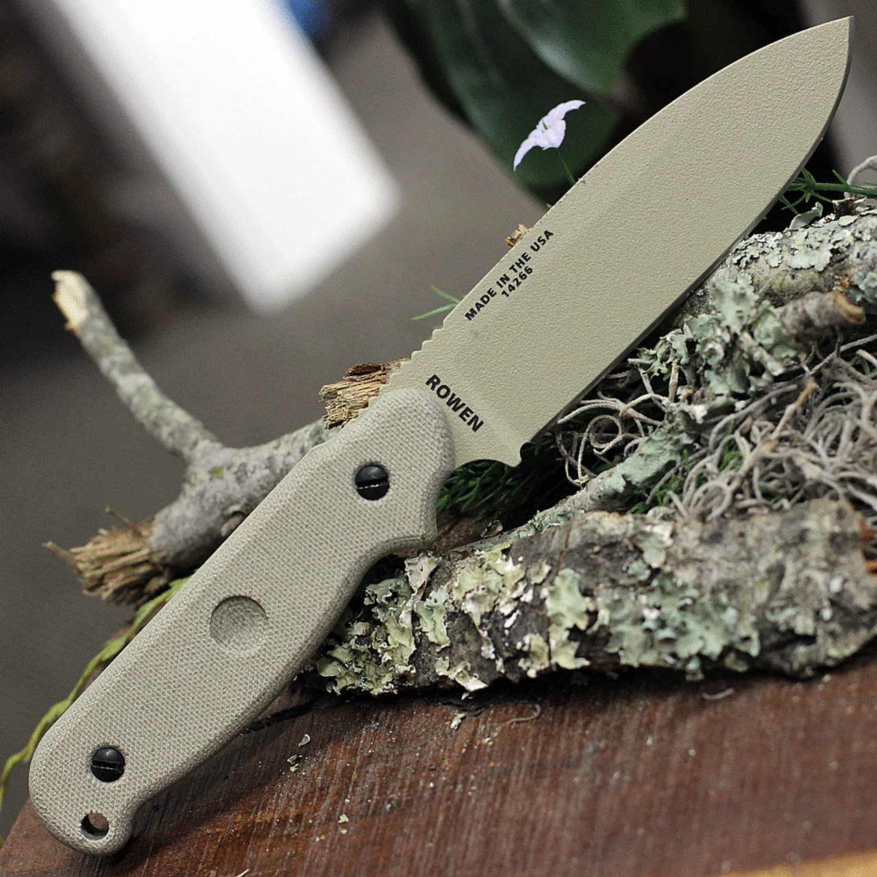 The Laser Strike knife was one of the first knives ever designed by Jeff Randall and Mike Perrin. It has now been re-introduced under the ESEE brand built by Rowen Manufacturing. The unique blade shape is preferred by many folks for doing heavy-duty bushcraft style work. It features removable handles with emergency fire starting tools inside the handle and a bow drill divot. As with other ESEE knives, the Laser Strike is backed with a NO QUESTIONS ASKED WARRANTY lifetime warranty. If youre looking for a survival blade that will serve you well in the woods or for your next deployment anywhere in the world, the Laser Strike may be the answer.