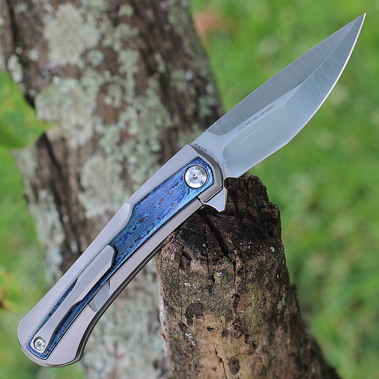 Ostap Hel makes his Kansept debut with the Kratos, a large folder inspired by the Greek kopis sword. This folder’s 3.79-inch cutting edge emulates the pronounced curvature of its historical predecessor, but with (comparatively) subtle, modern, utilitarian lines. The titanium frame lock Kratos weighs 5.2 oz.