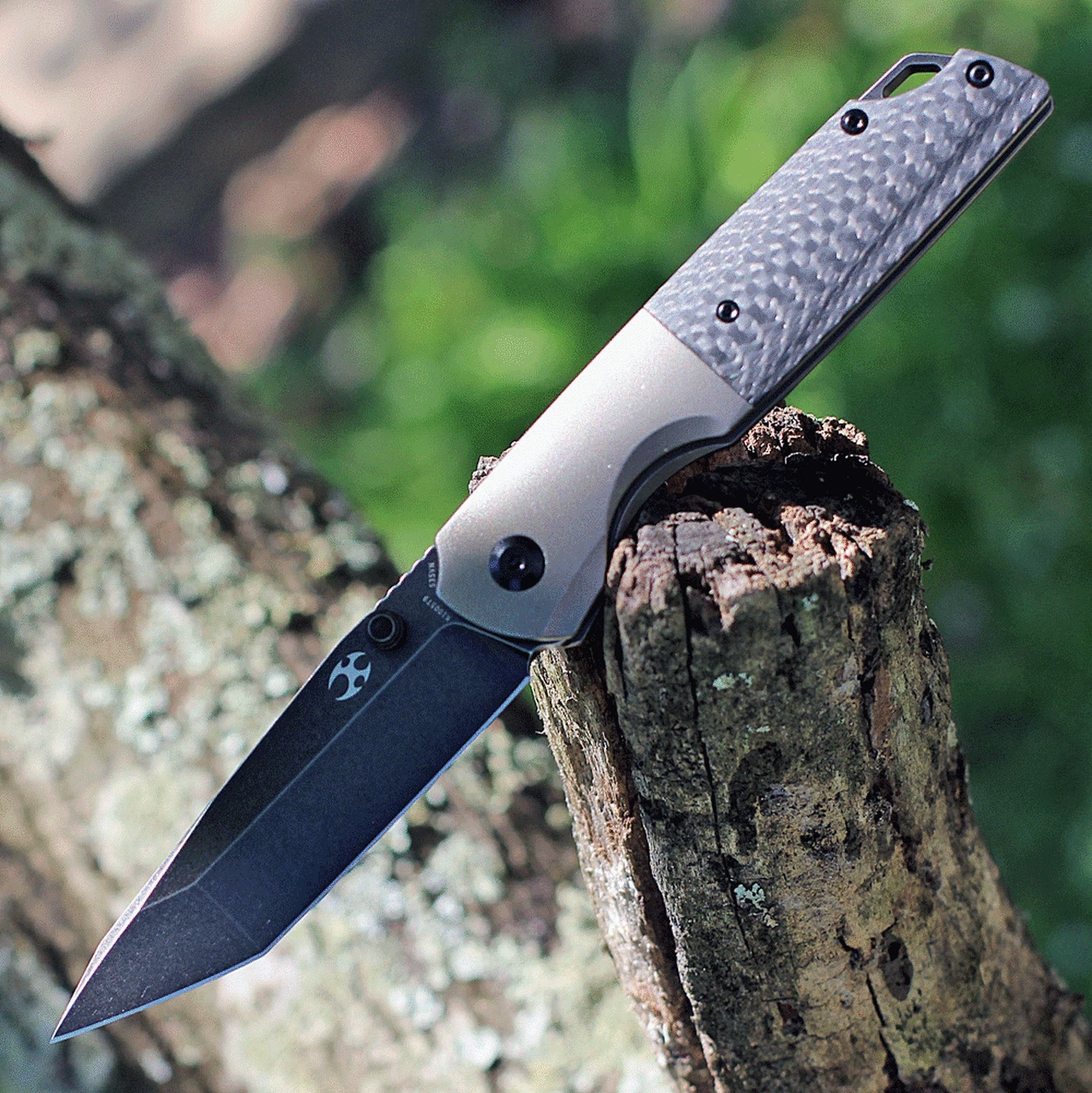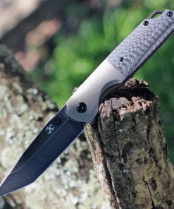 Kansept Knives Warrior K1005T9, 3.4″ S35VN Black Tanto Plain Blade, Bronze and Carbon Fiber Handle