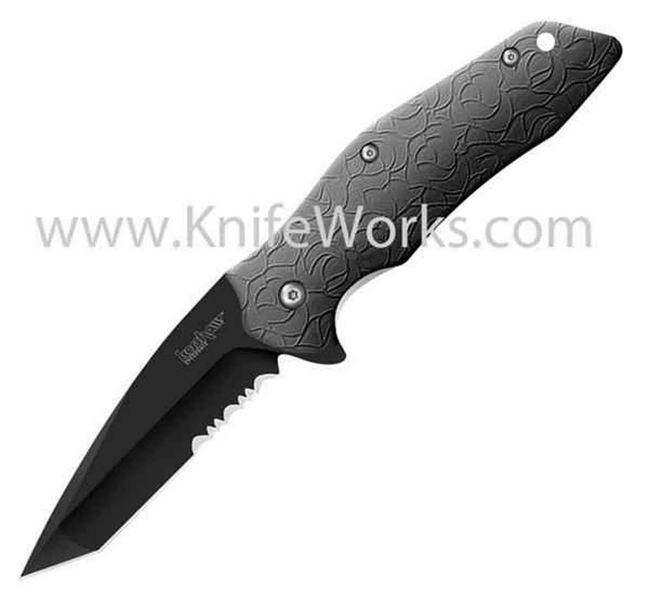 A modified tanto blade with partial serration is paired with textured, glass-filled nylon scales in this all-black beauty. Access the SpeedSafe assisted opening quickly and easily with an ambidextrous flipper. Drilled to accept a lanyard. An impressive look at a value price.