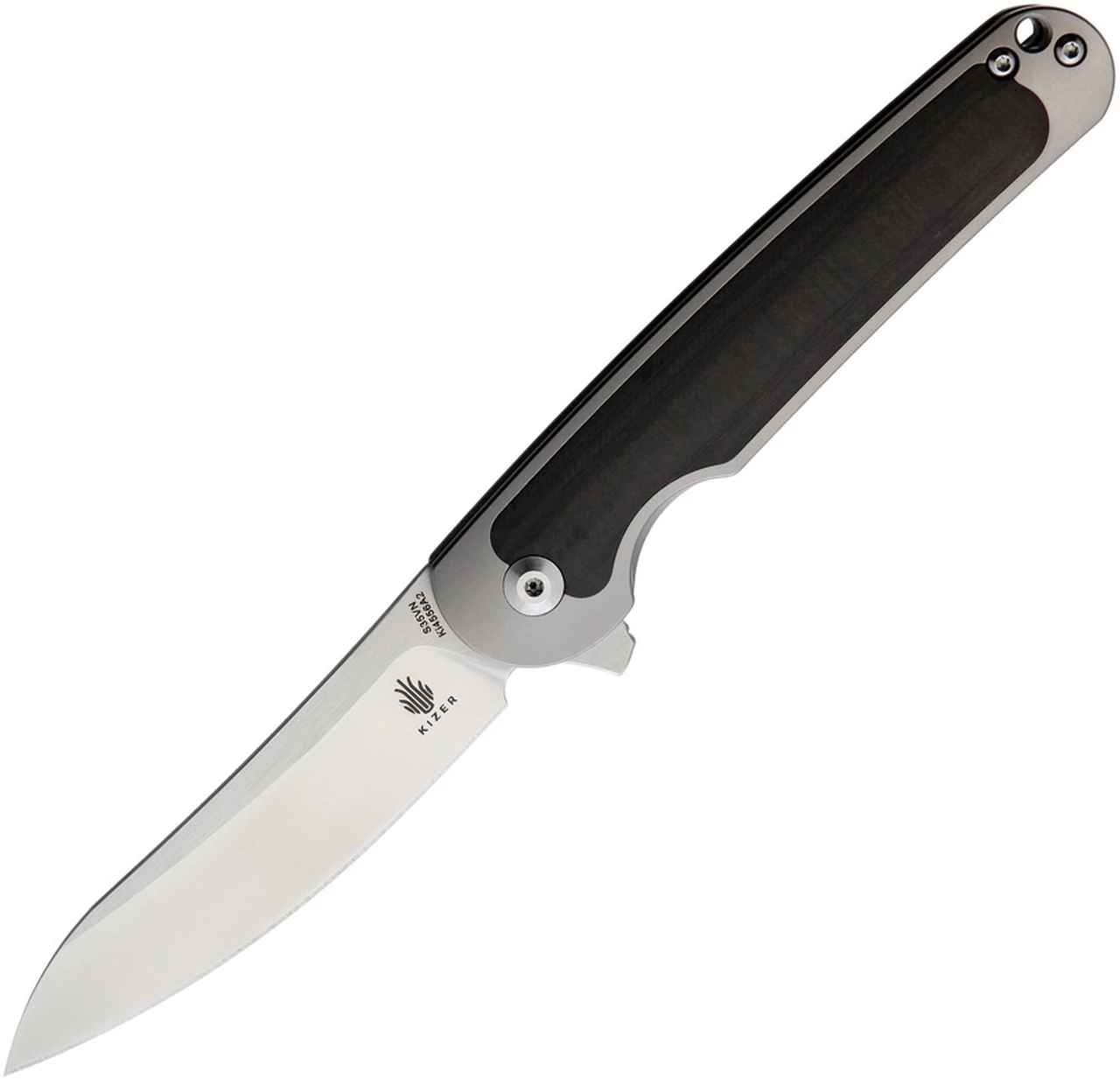 Kizer Cutlery Clutch Ki4556A2, 3.3″ CPM-S35VN Satin Modified Drop Point Blade, Black Carbon Fiber Handles