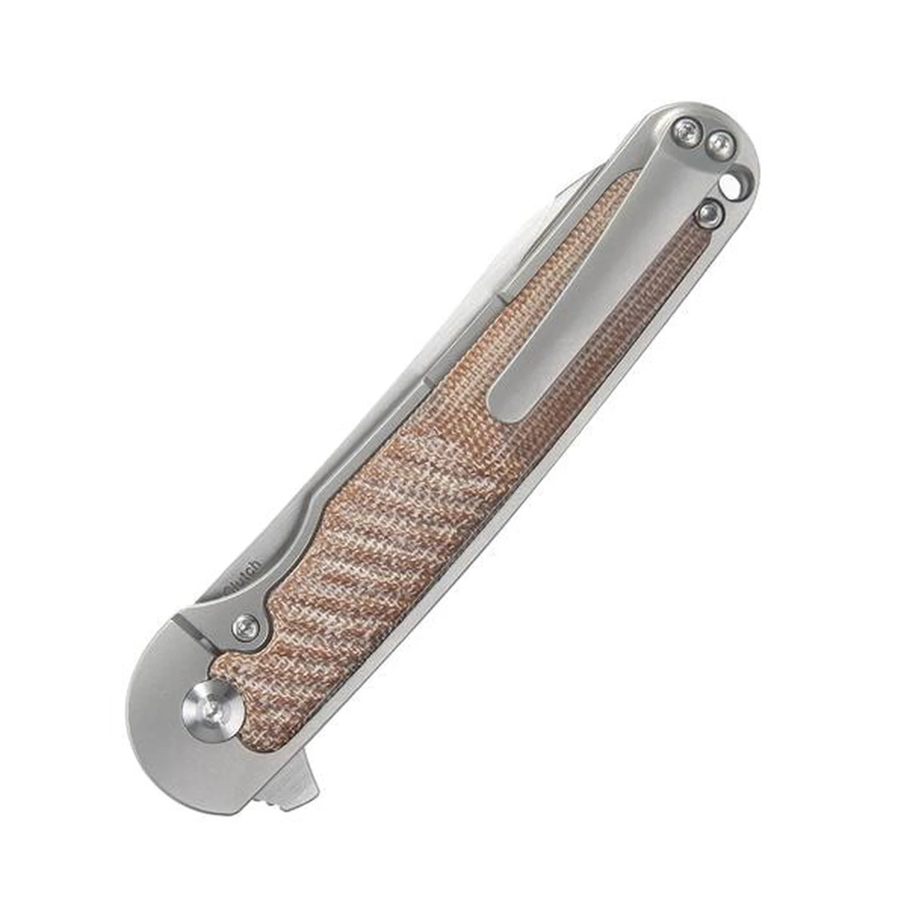 Designed by Carlos Elstner, The Kizer Clutch is a modern flipper knife with wonderful action and a smooth, comfortable build.Its blade is made from CPM-S35VN stainless steel with a satin modified drop point blade. The handle is made from titanium and Micarta material. Clutch has a wide range of uses, and the multifunctional folding device can be effectively used with a variety of materials: food, textiles, sticks, etc.