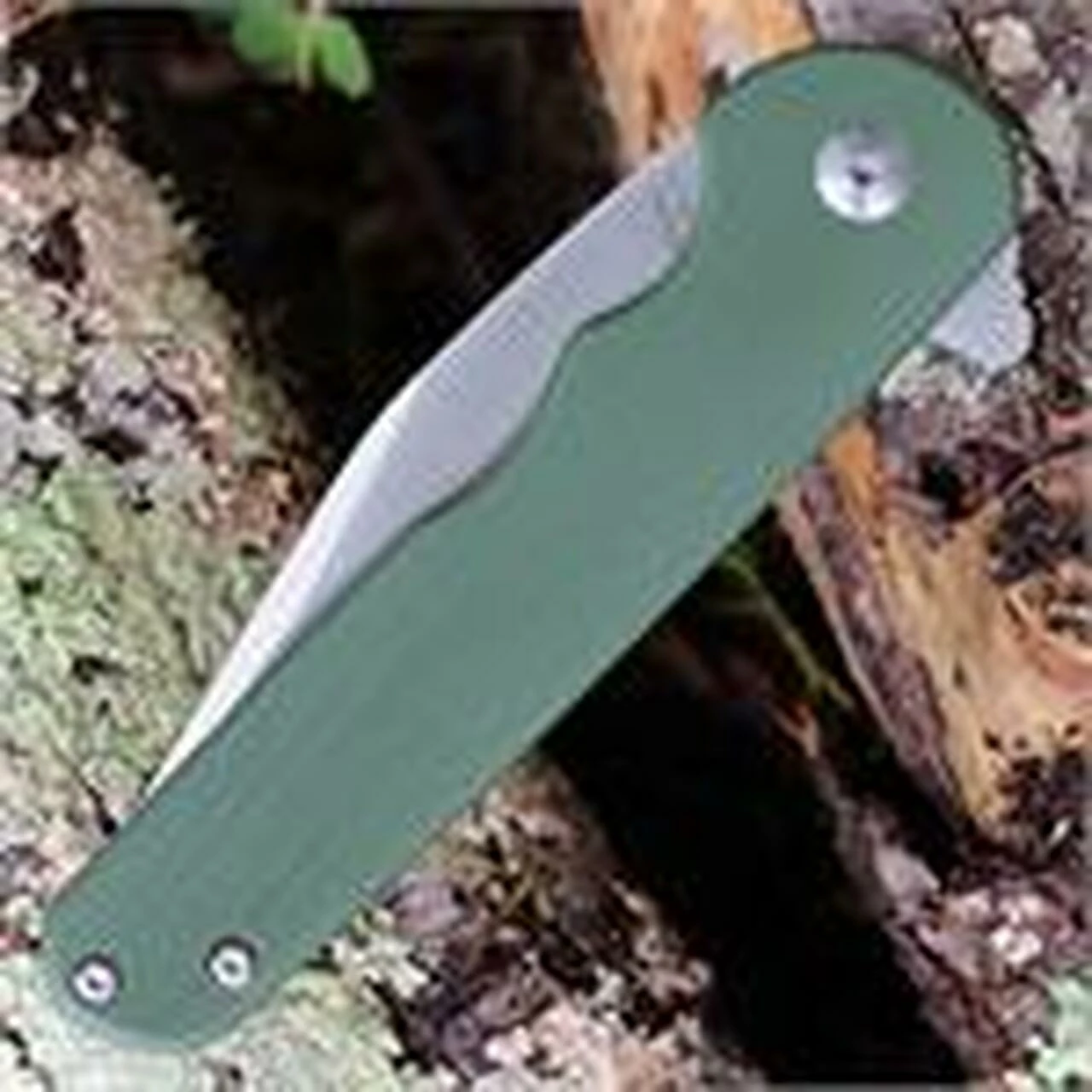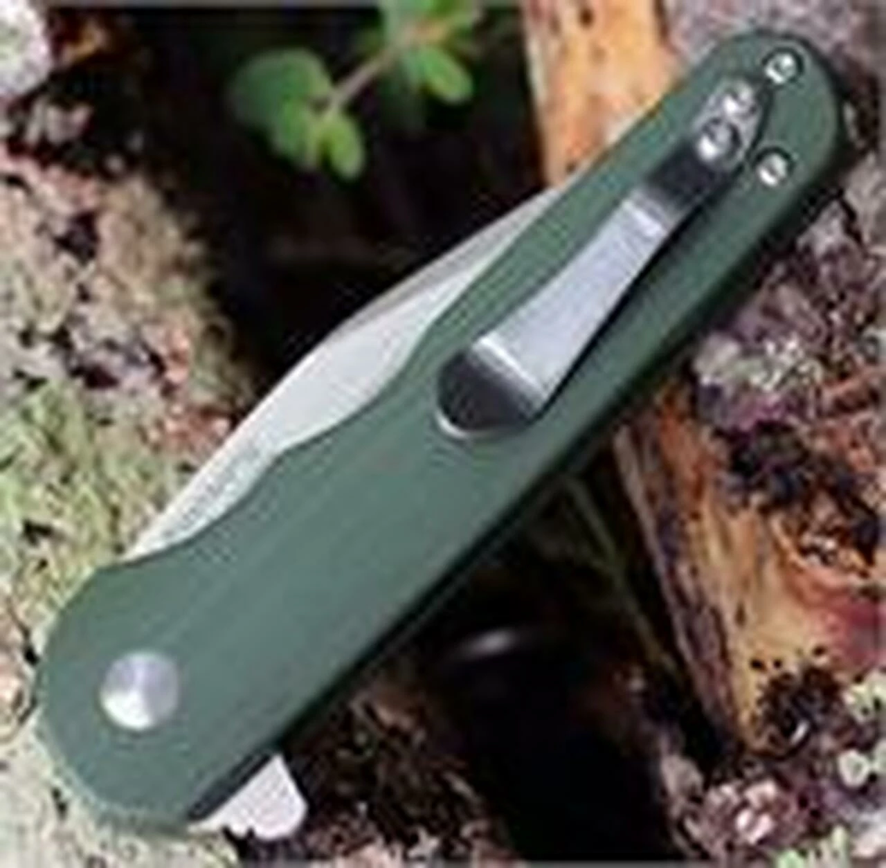 The Flashbang Flipper, V3454A2, is a collaboration of Kizer knives and knife maker Matt Cucchiara. The smooth fit and finish on this custom knife is absolutely exceptional. The Satin VG-10 blade is a clip point style with an extended tang that measures 3.06 inches. The smooth Green G10 handles are curved and have a finger groove so that it fits perfect in your hand. The lock mechanism is a linerlock to insure that when opened it is secure in even the toughest jobs. The blade opens smoothly using the flipper that is paired with a ball-bearing pivot system. The flashbang comes with a Stainless pocket clip and a Kizer cleaning cloth!