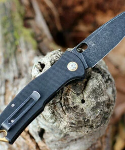 Lion Steel Molletta. 4 5/8″ closed heavy design framelock. 3 1/2″ black finish D2 tool steel blade. Features unique RotoBlock system, which allows turning a pivoting button or ‘lockbar stabilizer’, basically converting the knife to a fixed knife. Grooved red aluminum handles. Lanyard hole. Matte finish stainless pocket clip.