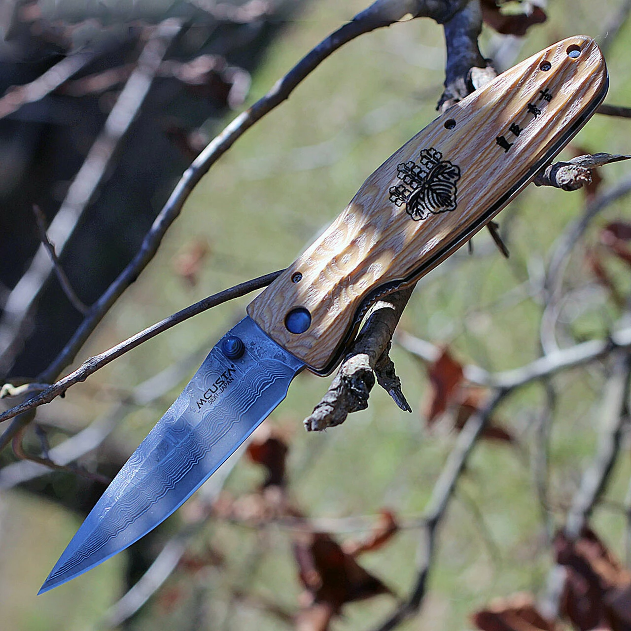 Mcusta 182D Linerlock, 3.75″ Damascus Plain Blade, Staminawood Handle