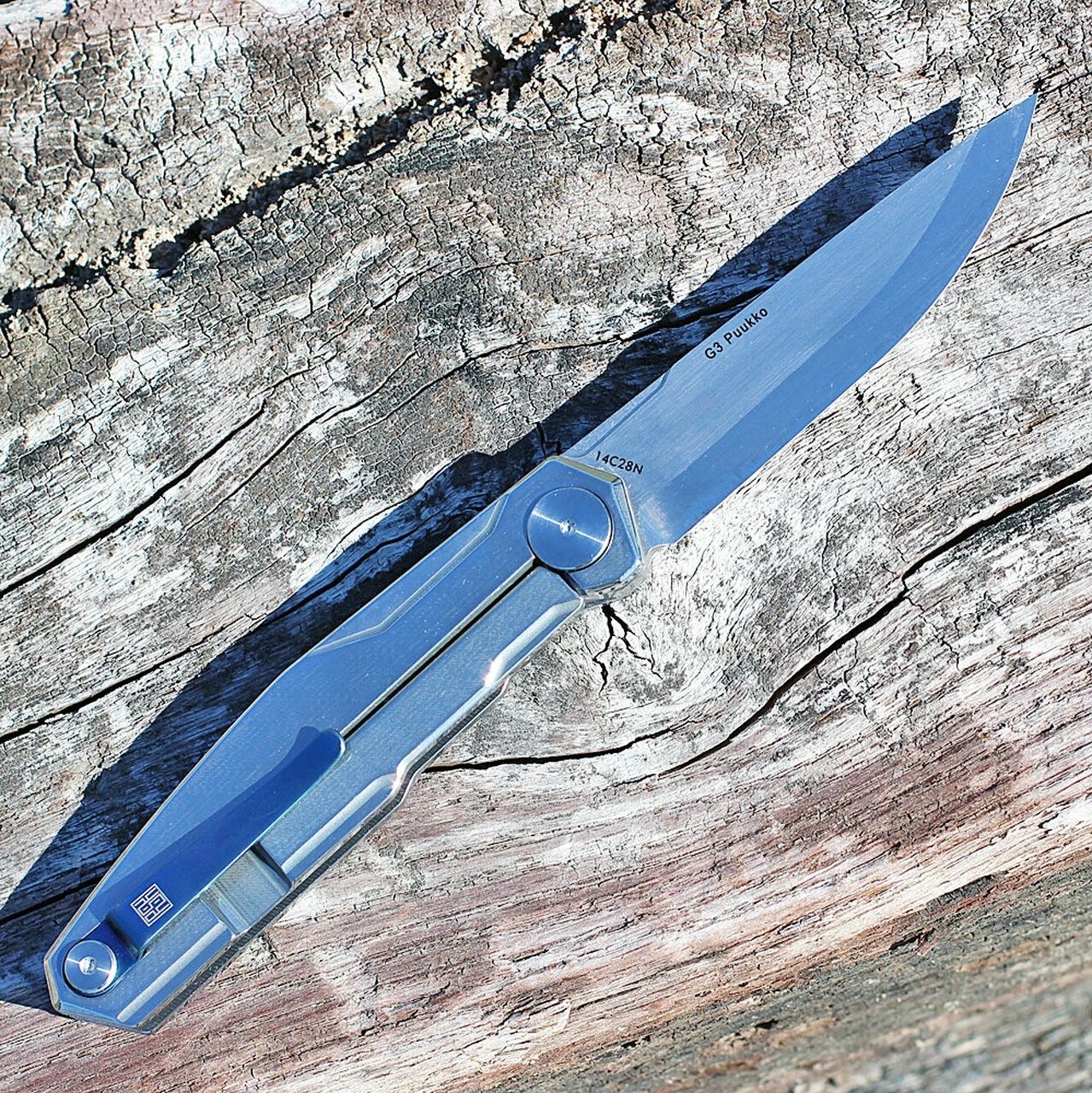 The G3 Puukko is the newest forerunner of the G-series. G stands for (G)entleman and embodies the elegance and innovative new style of this model type. The Puukko design was led by a long time collaborator Ostap Hel. The knife uniquely combines the contemporary with avante garde, with a sleek finish that every gentleman should expect. The G3 is a gentlemen tactical folding knife that modestly conceals the blade when the sheath is covered and impressively shows its power and elegance when unsheathed. Using CNC exquisite precision the knife is carved from solid stainless steel which comes in the classic flipper style with duplex grind, or the modern front flipper with Scandi grind. This knife provides style and precision for every gentleman.