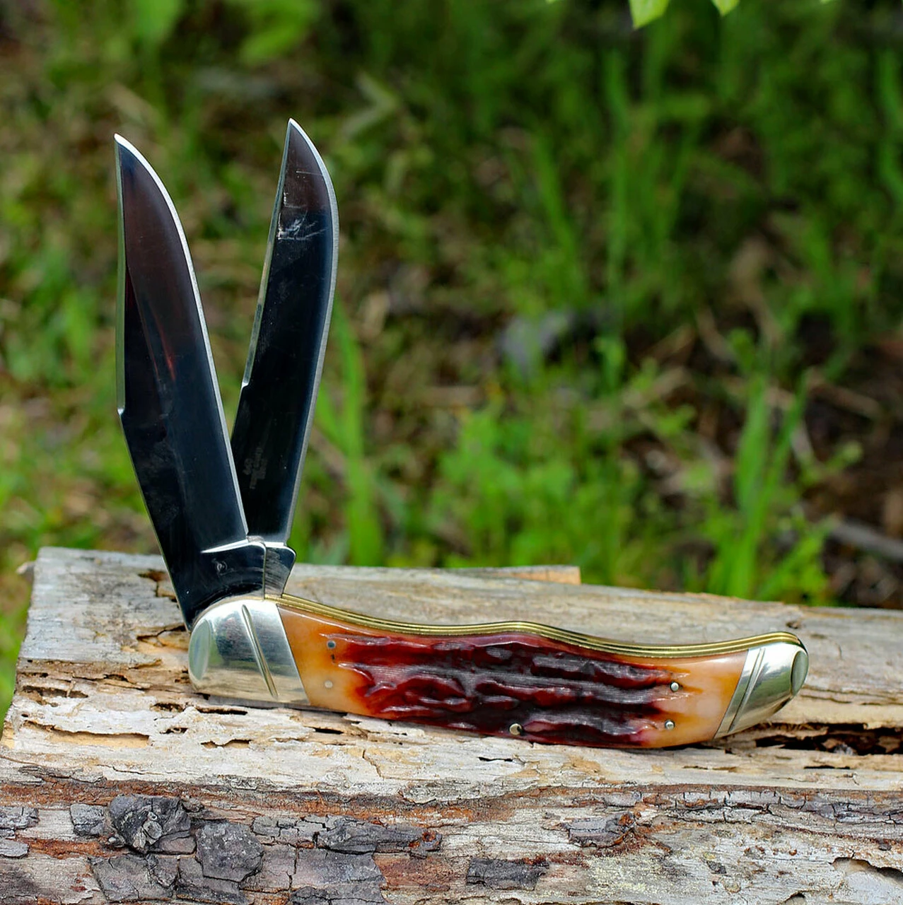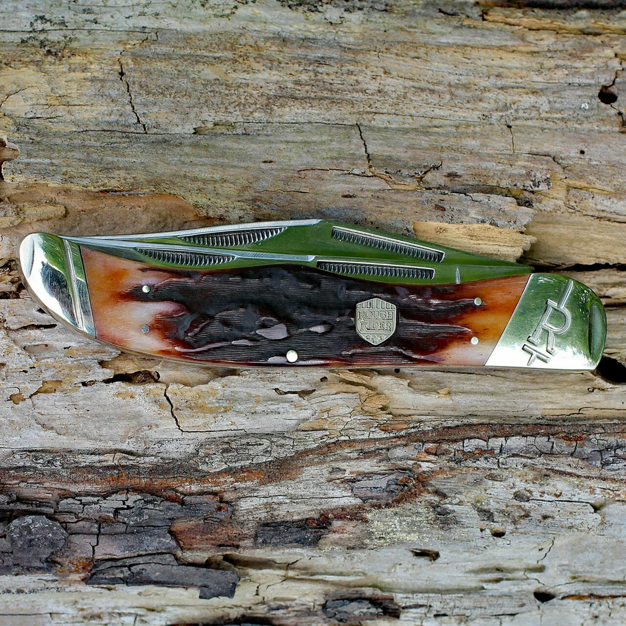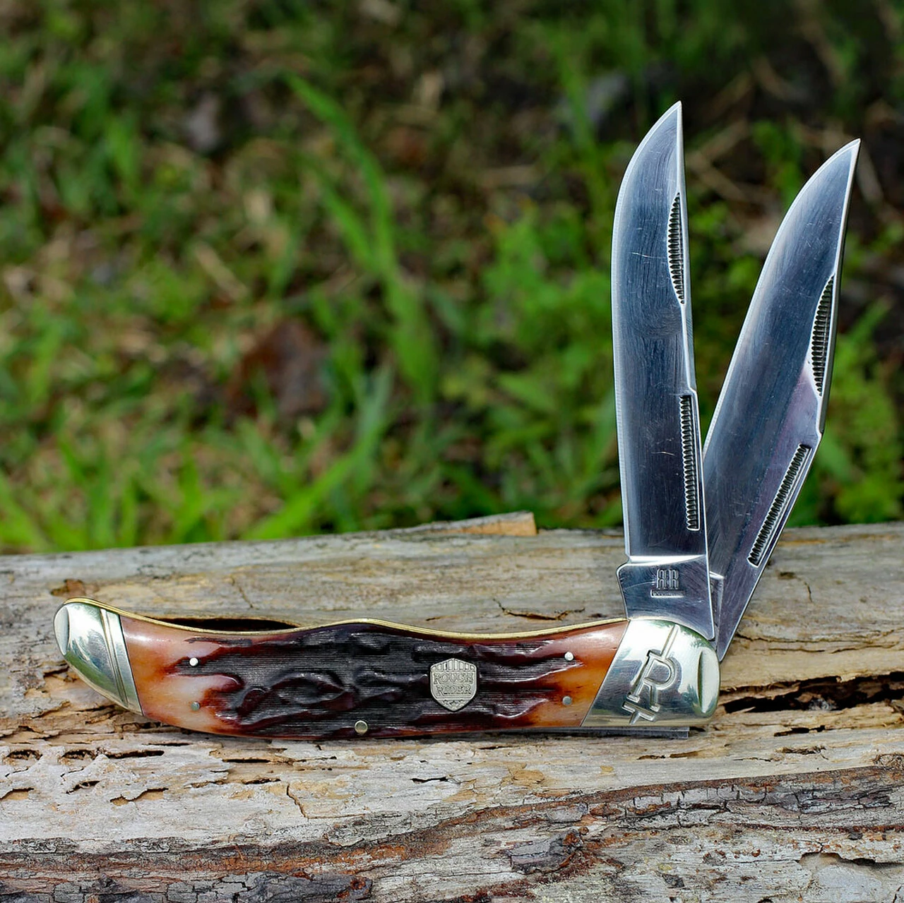 Rough Ryder 1804 Folding Hunter, 4″ 440A SS Blade, Brown Stag Bone Handle