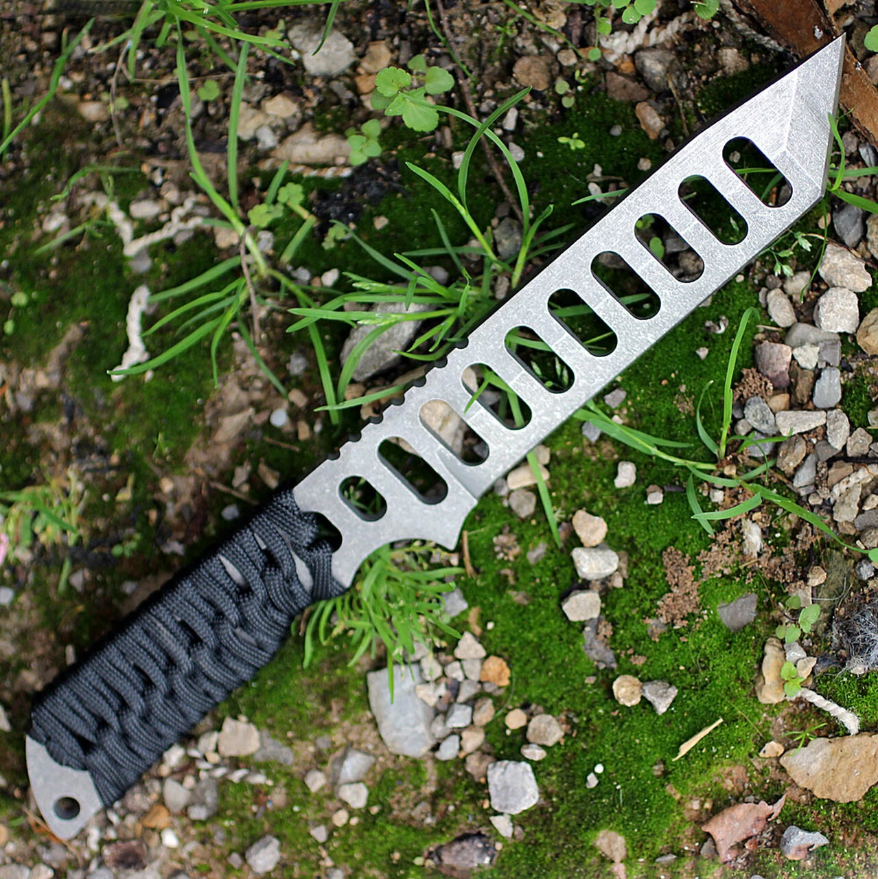 The ST Endurance is built for multipurpose use in a high stress environment.ย The titanium construction delivered in an ultra light slotted configuration means this knife can deliver and take a beating without breaking or weighing you down.ย The 6Al-4V titanium is .188″ thick and reinforced with Tungsten Carbide for edge retention.ย ย The knife is available in two styles – the Tanto measures 10″ overall, with a 5.25″ blade and a 4.75″ paracord wrapped handle.ย With a holstex sheath, the Tanto weighs 5 oz.ย Without the sheath it weighs 3.8 oz.ย For a slightly smaller configuration, the Drop Point measures 9″ overall with a 4.25″ blade and 4.75″ paracordย wrapped handle.ย With a holstex sheath, the Tanto weighs 4.2 oz and 3.4 oz without.