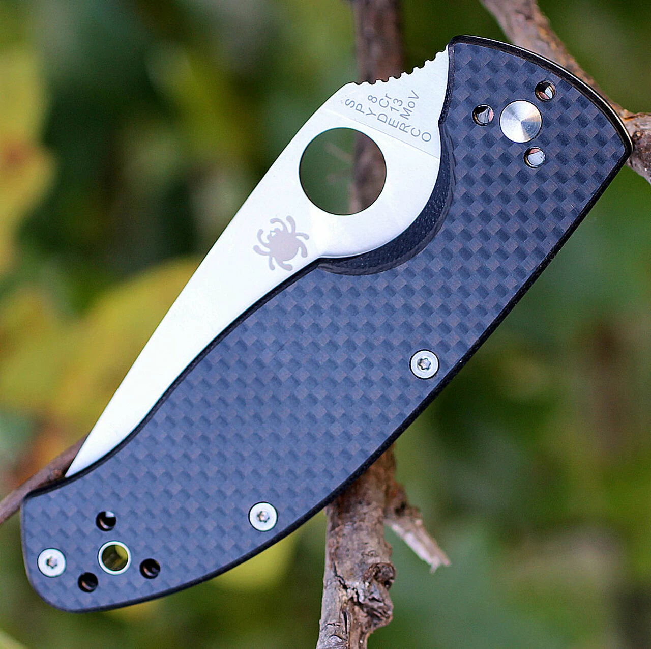 Spyderco C122CFP Tenacious, 3.39″ 8Cr13MoV Plain Blade, Carbon Fiber Handle