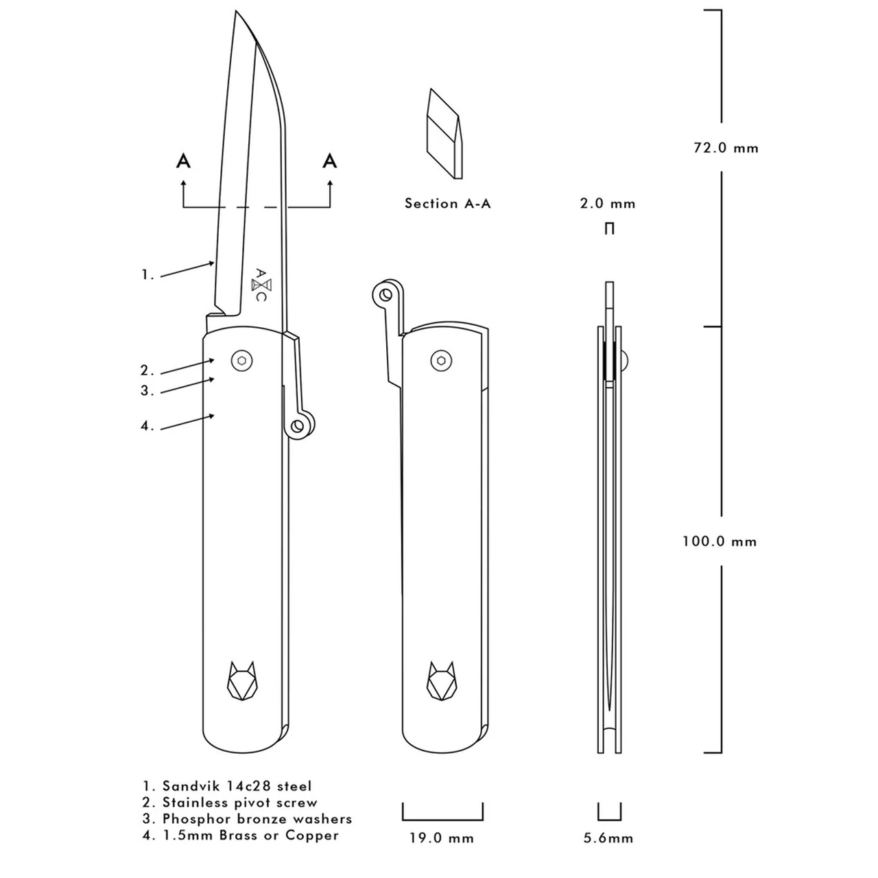 Andersson & Copra Urban Husky Friction Folder (ACUHC) – 2.8″ Sandvik 14C28N Steel, Copper Handle with Leather Pouch