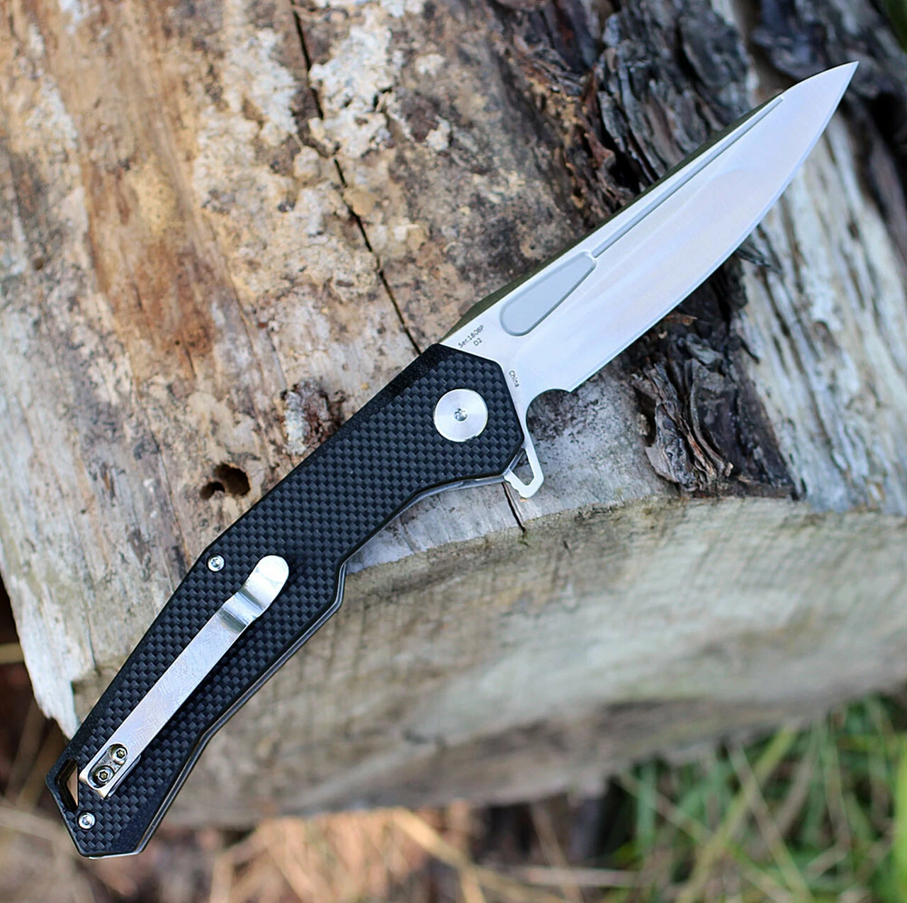 Artisan Zumwalt ATZ1808PBKF, 3.94″ D2 Plain Blade, Flat Black G-10 Handle