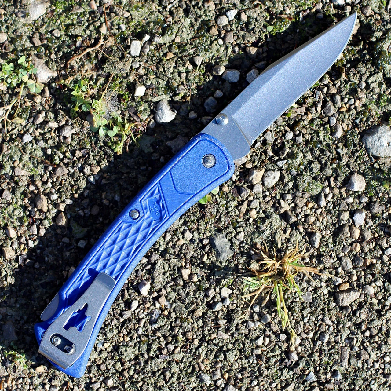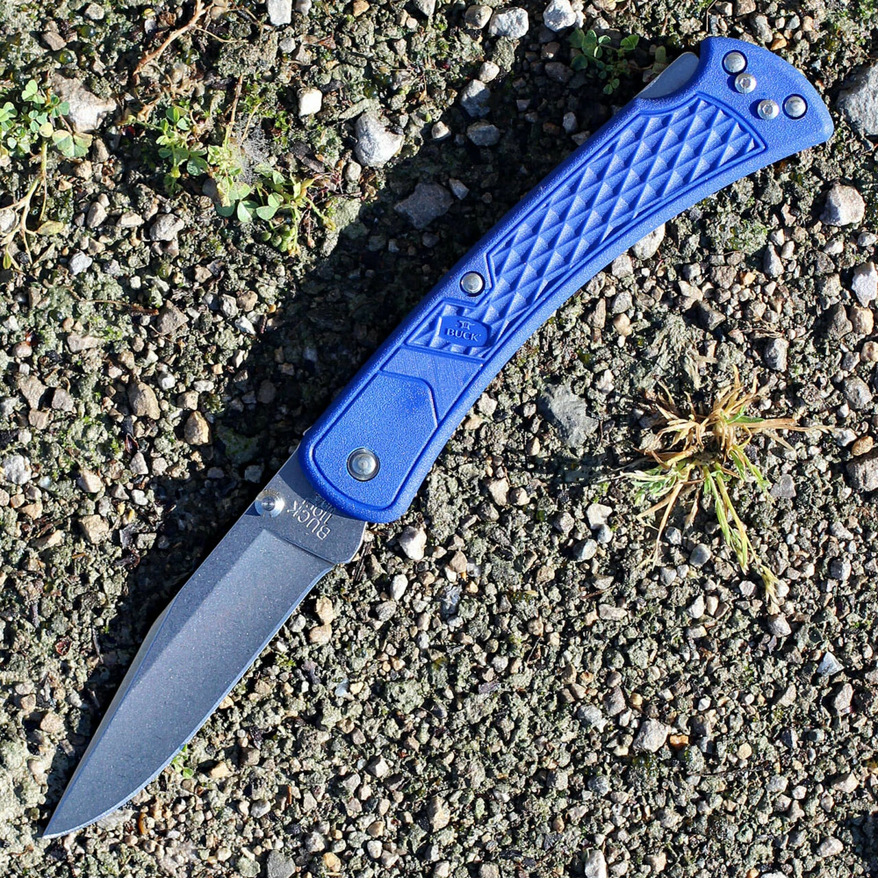 Buck 110 Slim Hunter, 3.75″ 420HC Clip Blade, Blue Nylon Handle