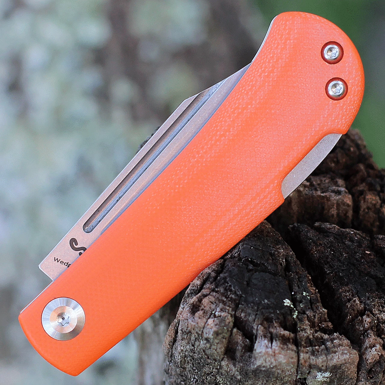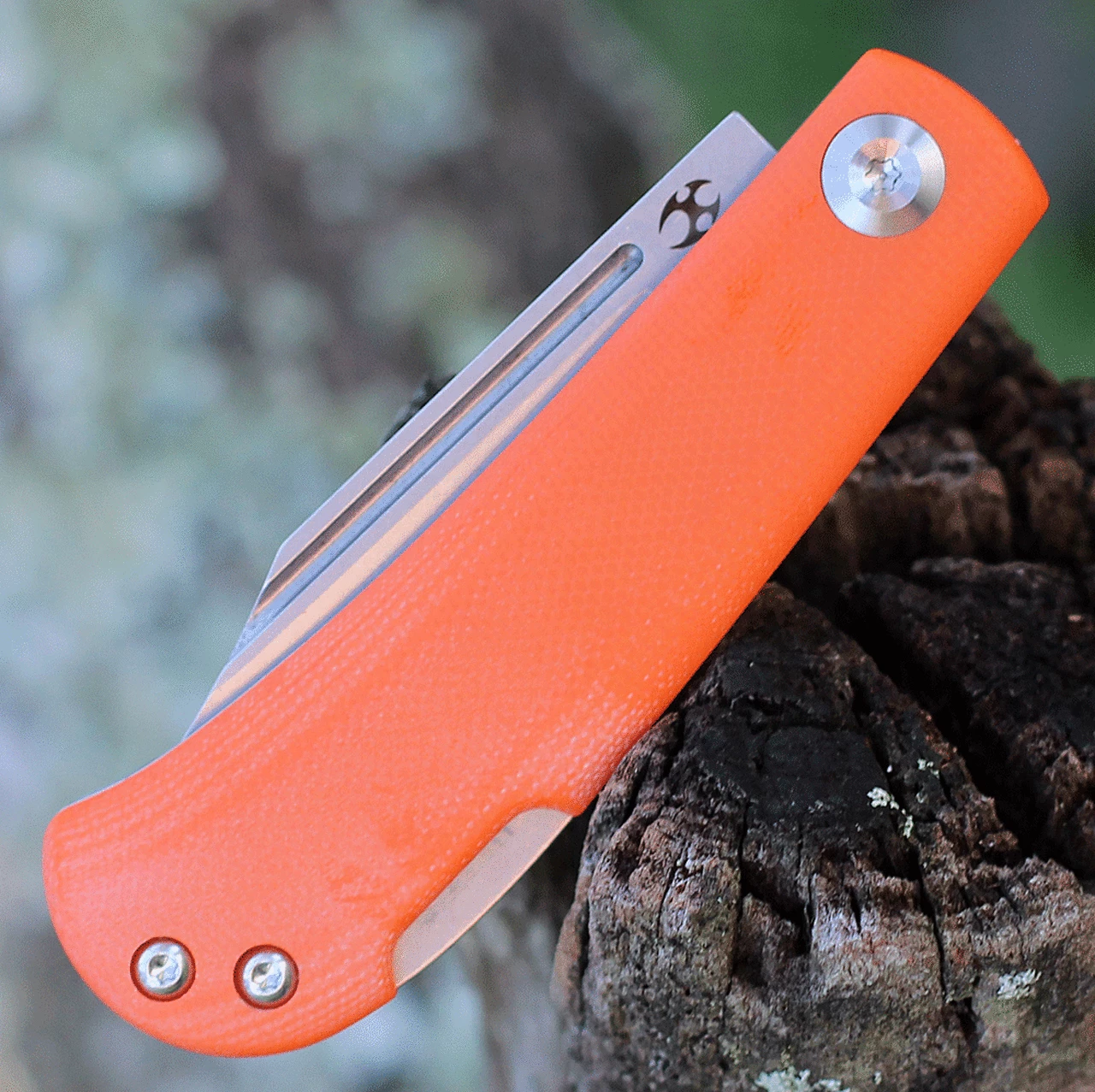 Kansept Knives Wedge Lock Back (T2026B8) – 2.9″ 154CM Stonewashed Clip Point Blade, Orange G-10 Handle