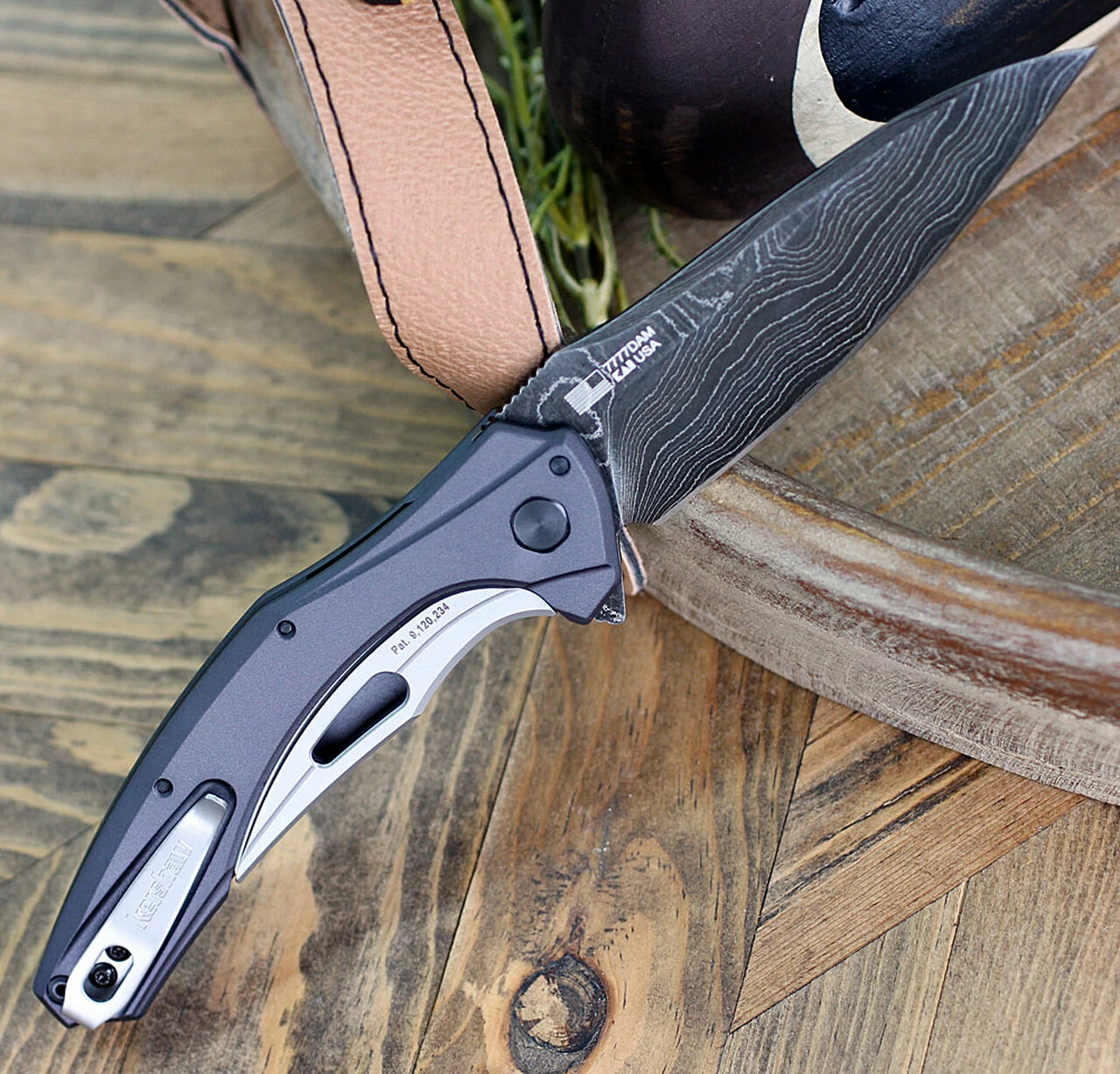 Kershaw 7777 Bareknuckle Flipper Knife, 3.5 in. Damascus Blade, Aluminum Handle