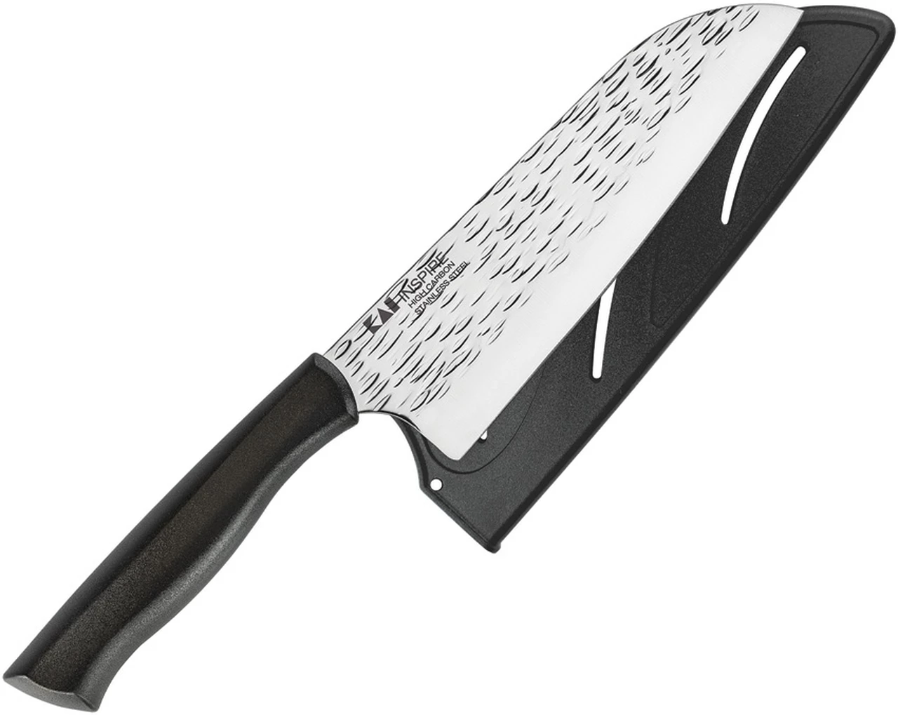 Kershaw Inspire Santoku, 6.75″ Hammered 4116 Stainless Blade, Black Synthetic Handle
