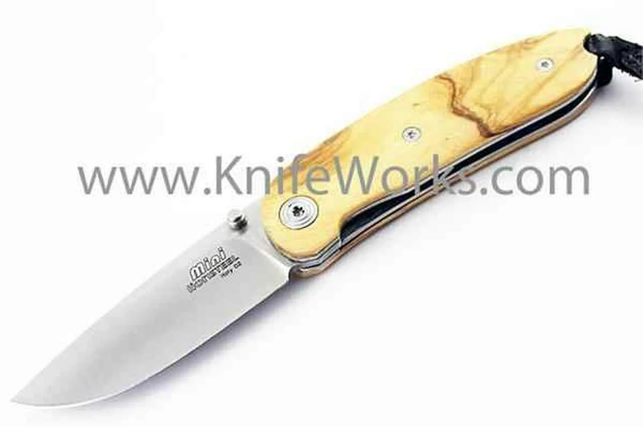 Lion Steel Mini, Olive Wood Handle, w/ Black Leather Pouch