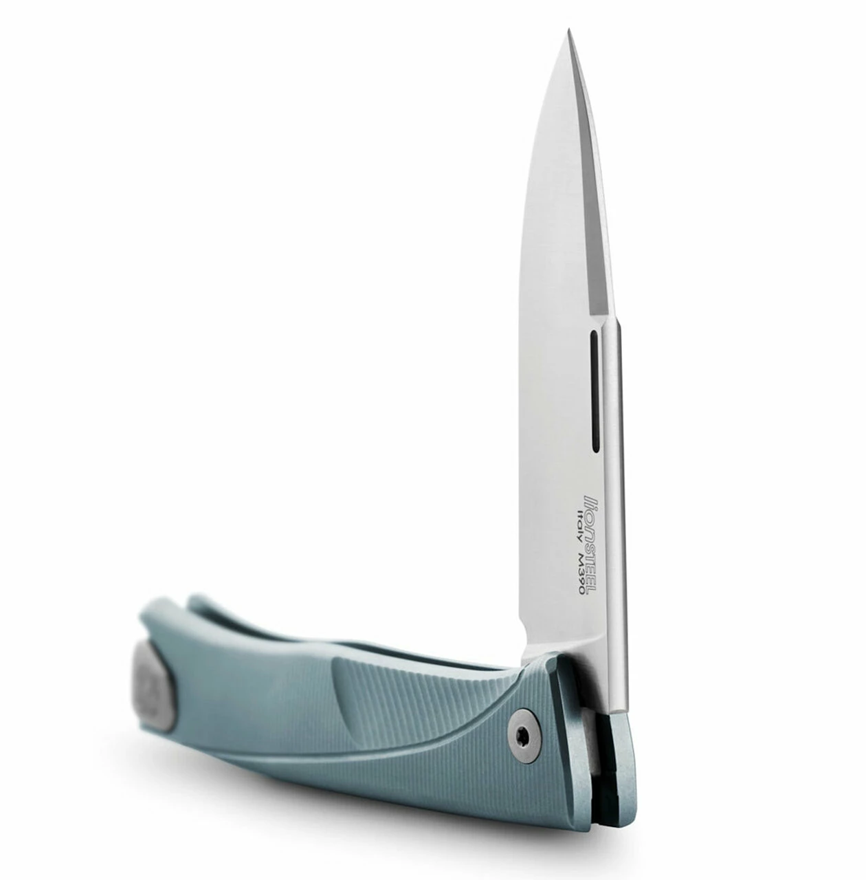 LionSteel Thrill Slip Joint (TL BL) – 3.15″ M390 Satin Drop Point Blade, Blue Titanium Integral Handle