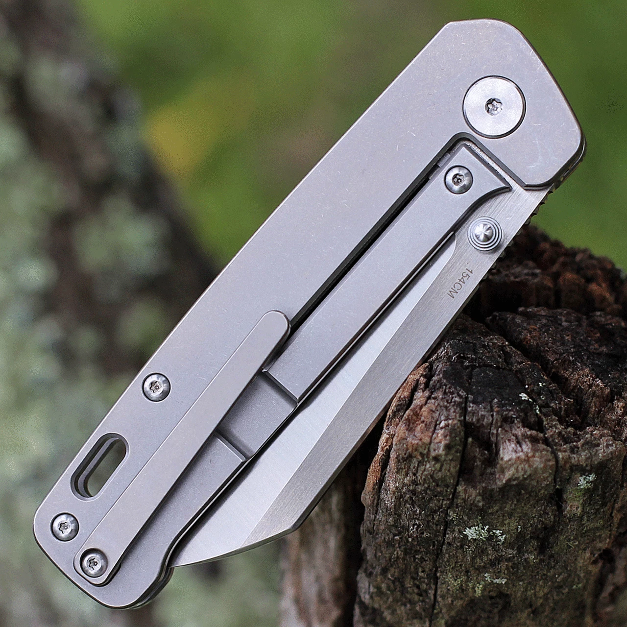 This Penguin by QSP Knife has an exceptionally smooth opening action with the thumb stud opening and ceramic ball bearings . The handles is made from titanium. The knife comes with a reversible deep carry pocket clip and fits perfectly in a pocket
