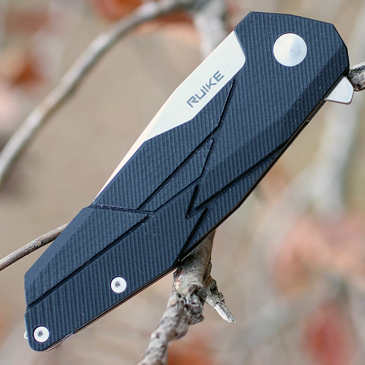 Ruike P138B, 3.5″ 14C28N Plain Blade, Black G-10 Handle