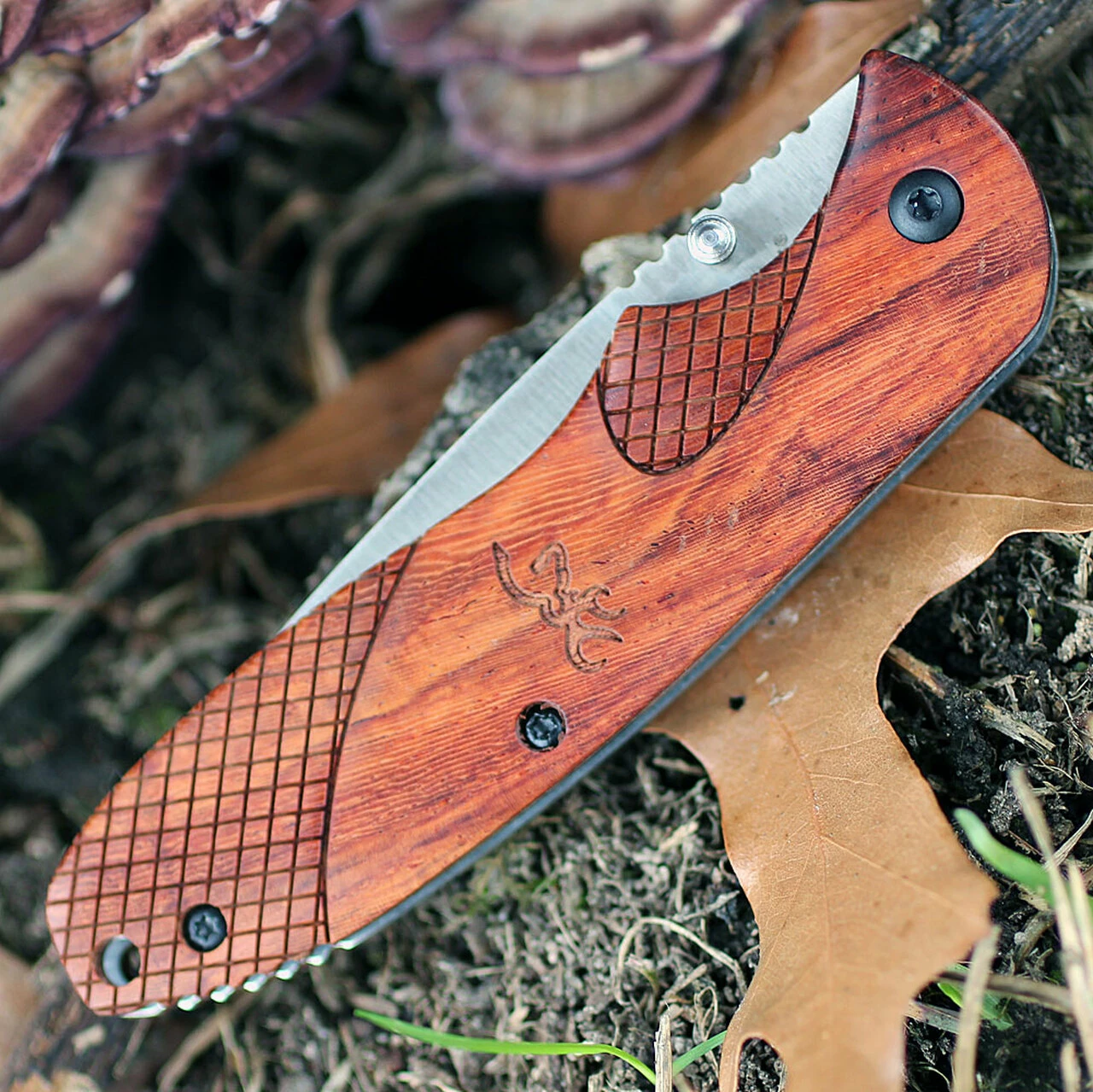 Browning Rosewood Linerlock, 3″ Stainless Plain Blade, Rosewood Handle