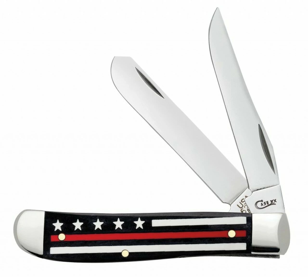 Case Mini Trapper 7311 Red Line Stripes of Service, 3.5″ Closed Length SS Blade, Bone Handle