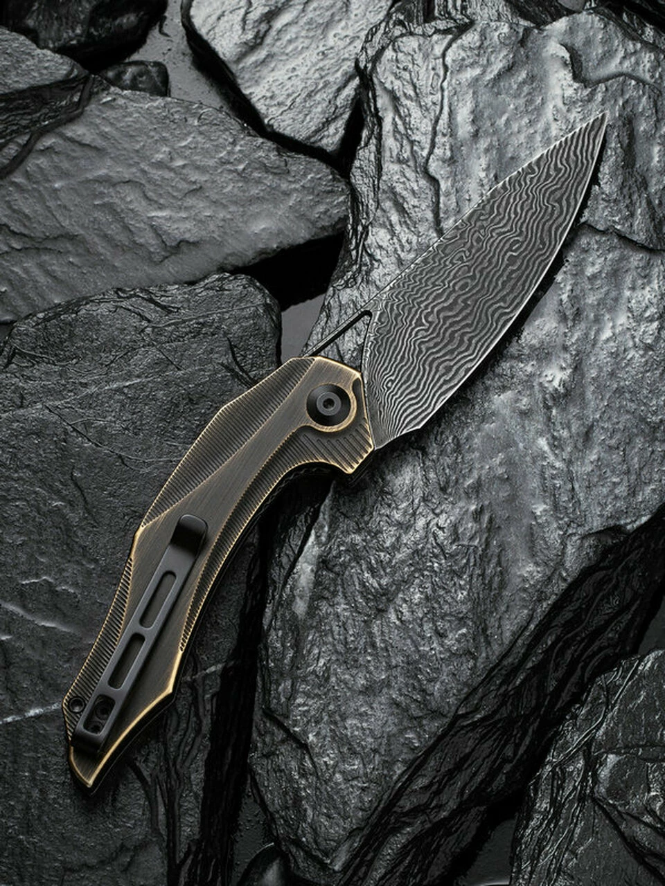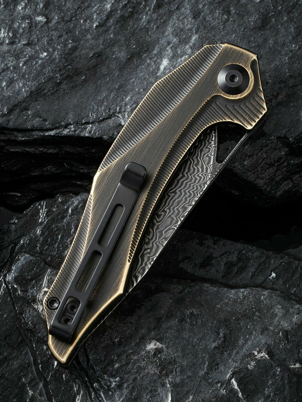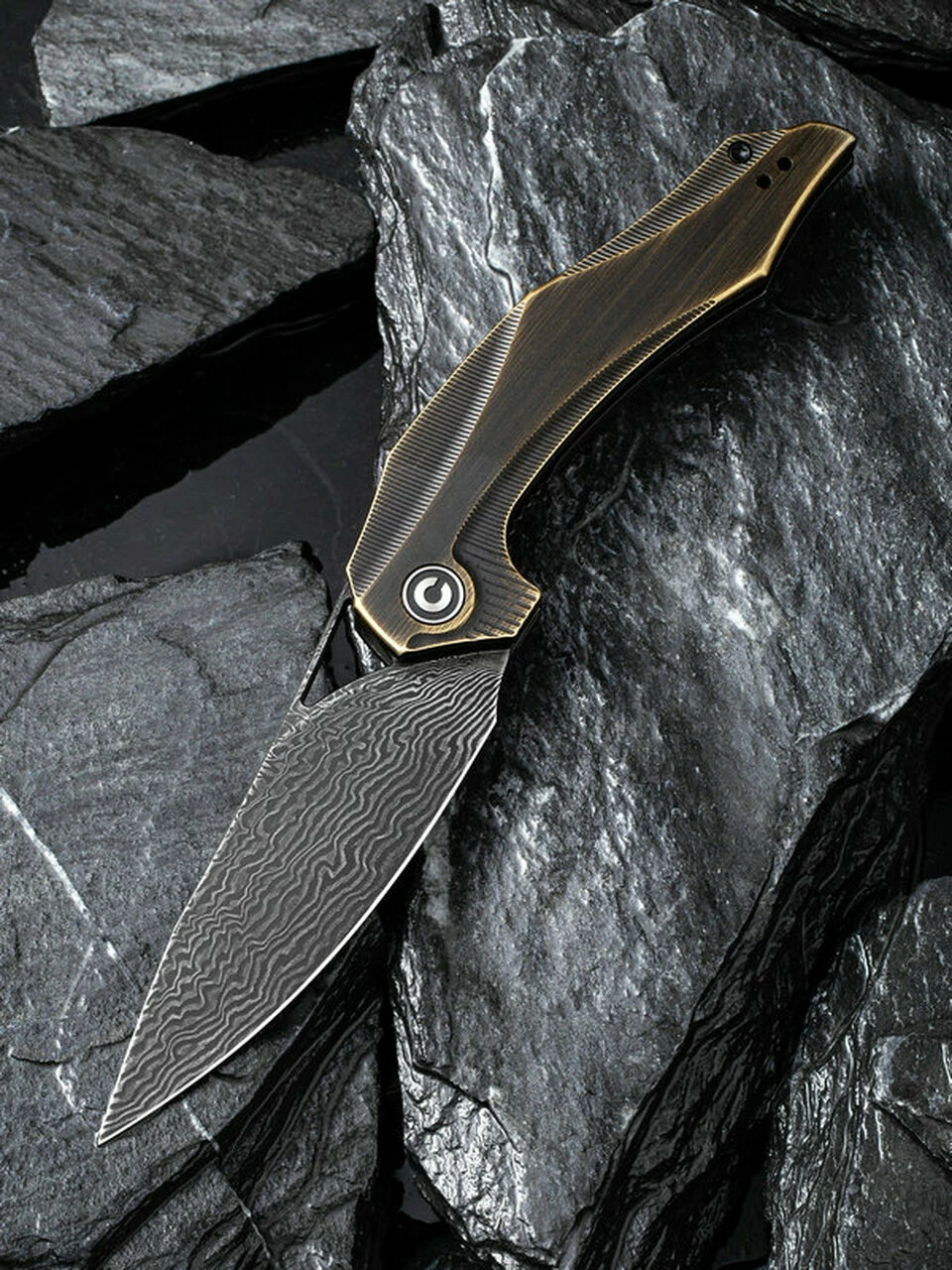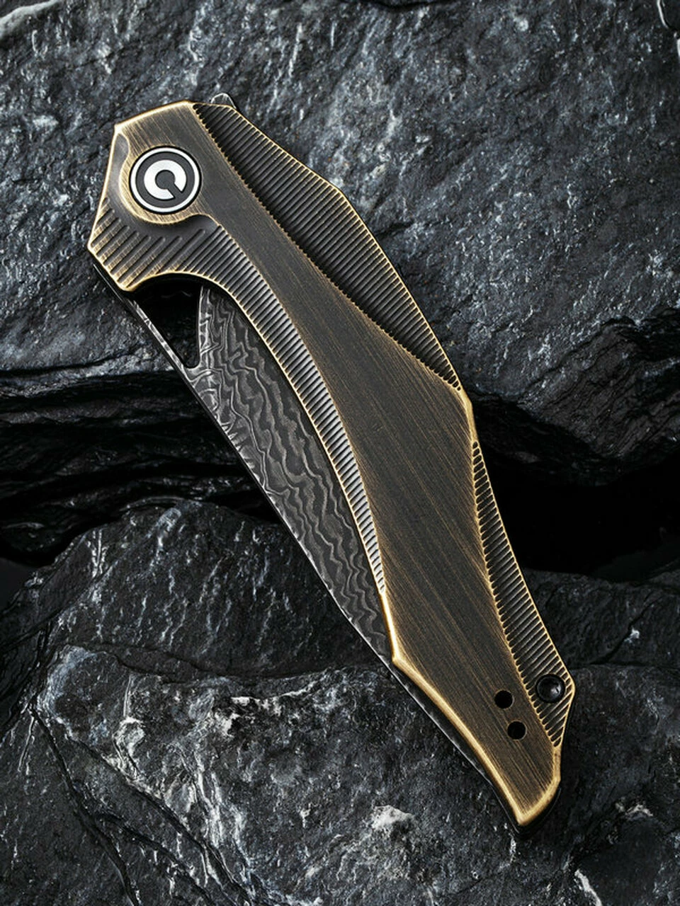 Civivi Plethiros Linerlock Brass C904DS3, 3.45″ Damascus Plain Blade, Brass Handle