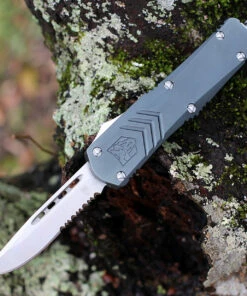 CobraTec Knives MGYFS-XMDS Medium FS-X Grey, 3.0″ D2 Steel Drop Point Serrated Blade, CNC Aviation Aluminum Handle