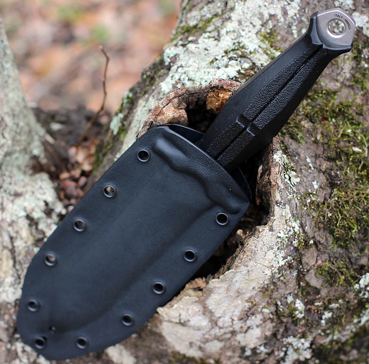 - Ambidextrous Kydex sheath will hold the knife securely in any position or orientation
