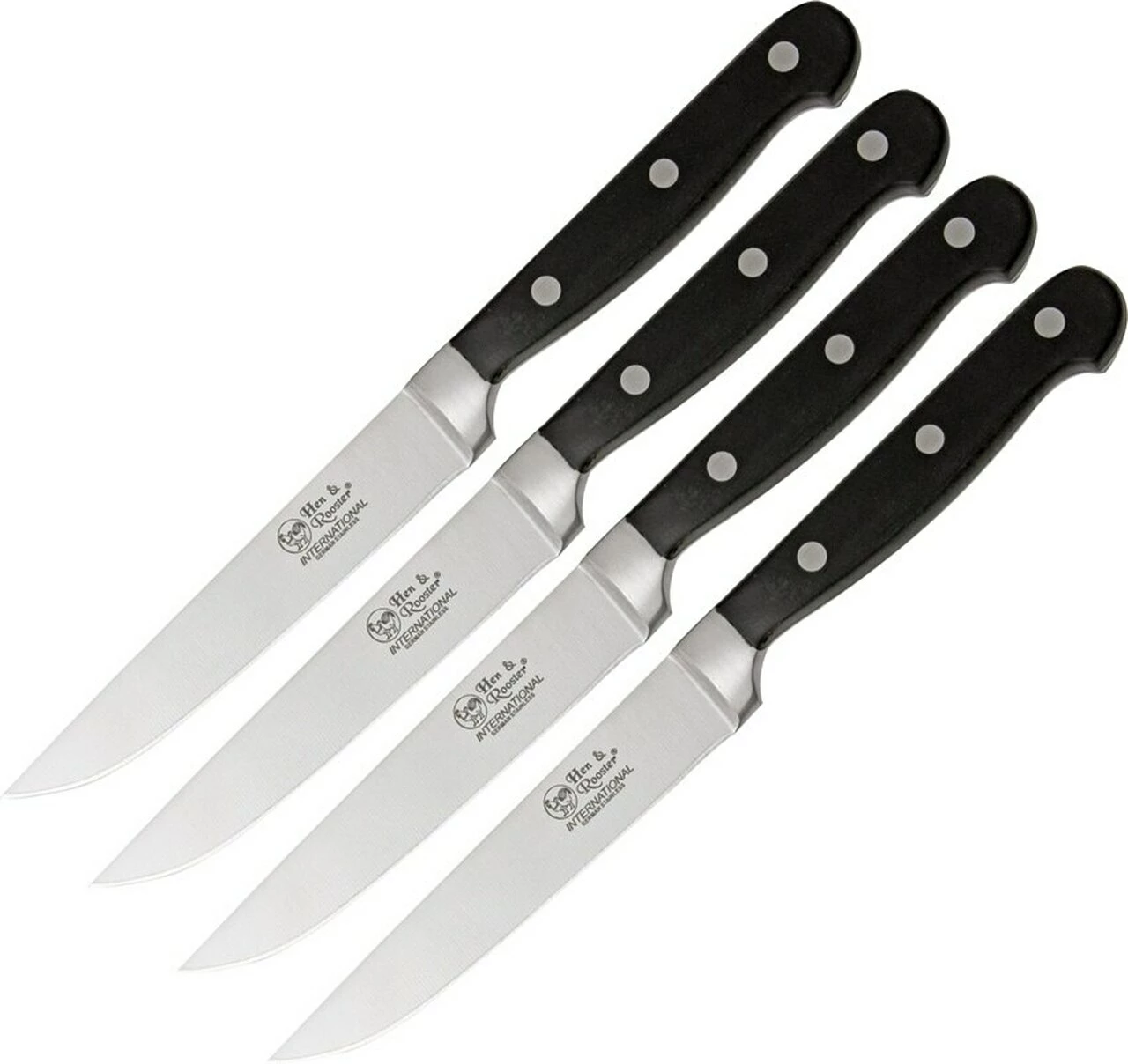 Hen & Rooster HRI009 Six Piece Steak Knife Set, 5″ 440A Stainless Plain Blade, Stainless Guard, Black Wood Handle