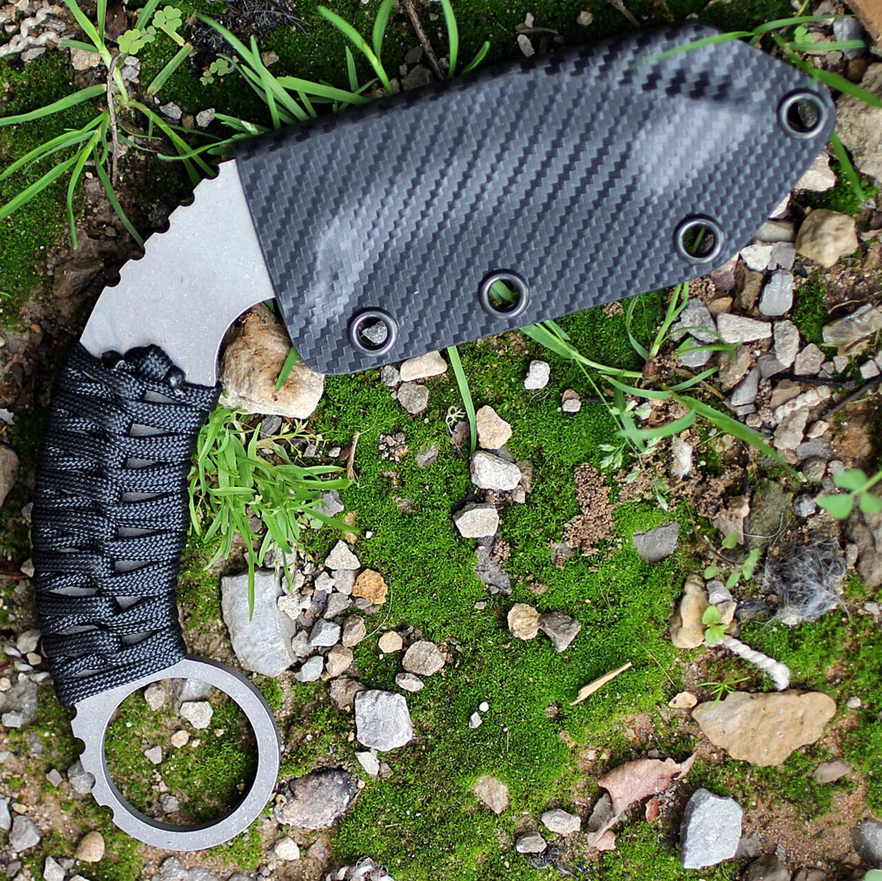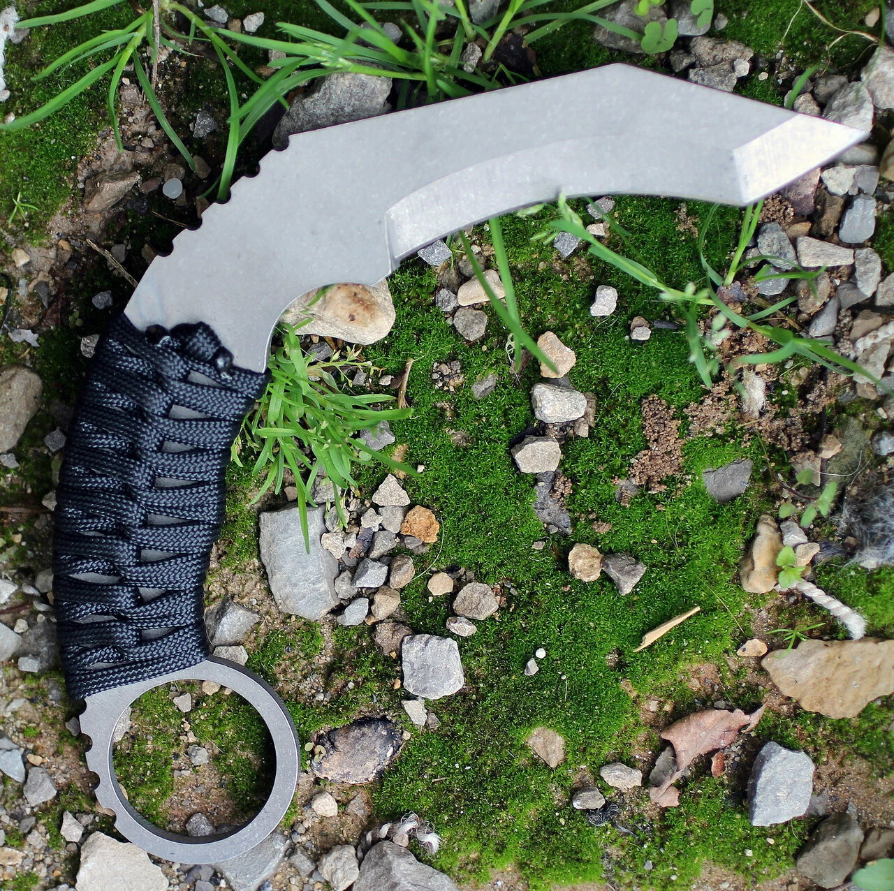 The ST Spartan Karambit joins the grim efficiency of the karambit style knife with the functionality of a spear point blade. The .188 6Al-4V titanium blade is 3.6″. The grip measures 3.4″ and terminates at a 1.2″ diameter finger ring providing a fail safe grip. The handle is wrapped in 550 paracord and the Holstex ® material sheath is molded specifically to the blade for great fit. A layer of tungsten carbide is applied to the blade to reinforce the titanium cutting edge. This ST Spartan Karambit weighs 4.4 oz with the sheath.